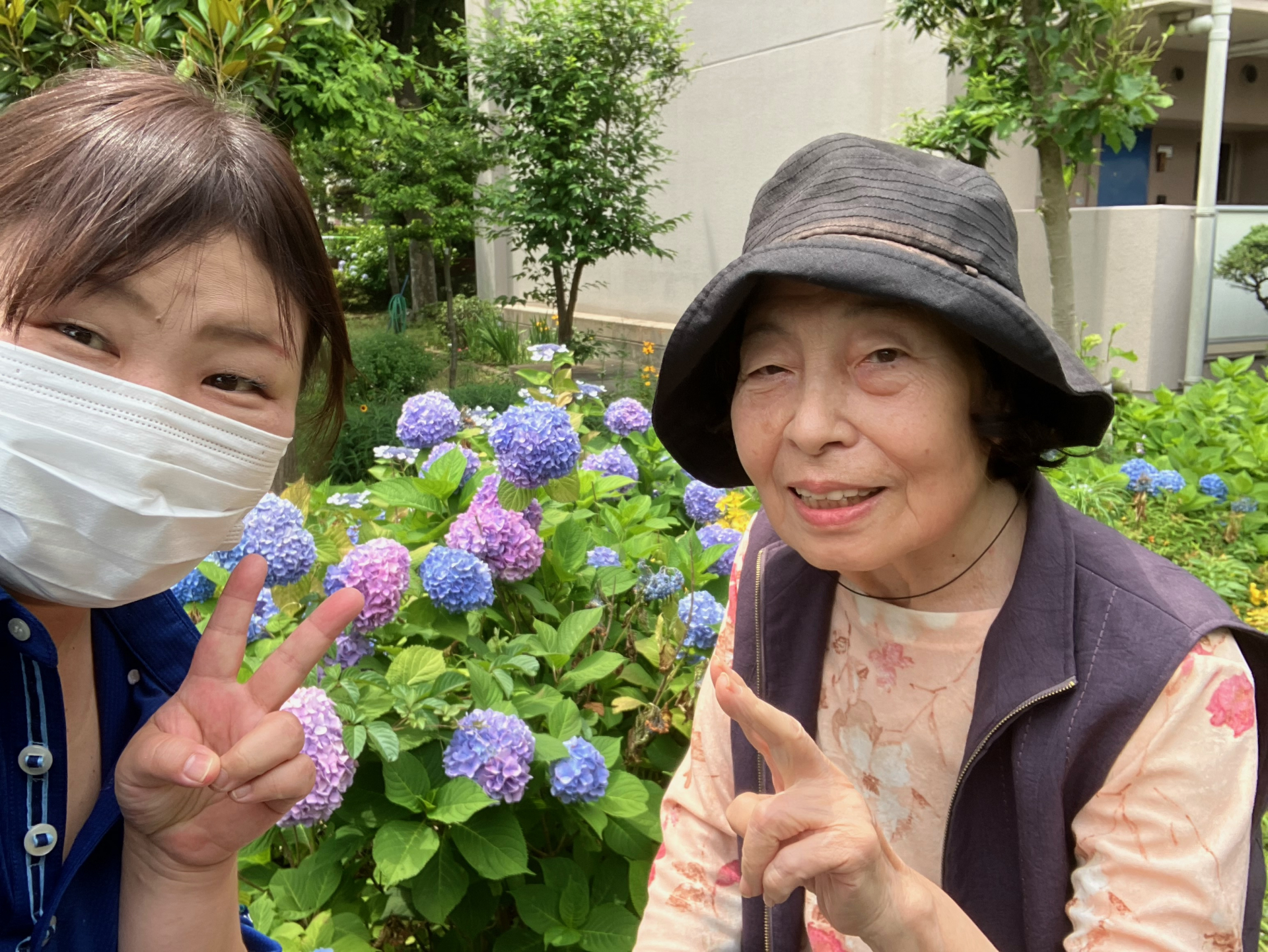 職員送迎はゆっくりお花を見て歩くチャンスですね。
