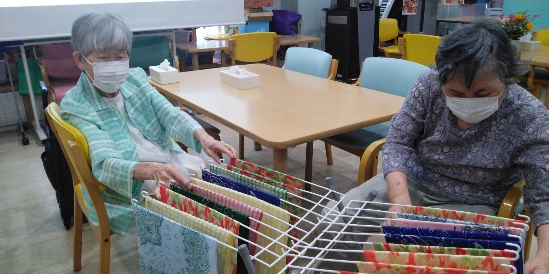 タオル畳み、テーブル拭き、塗り絵ファイル整理、鉛筆削り、お皿拭き・・