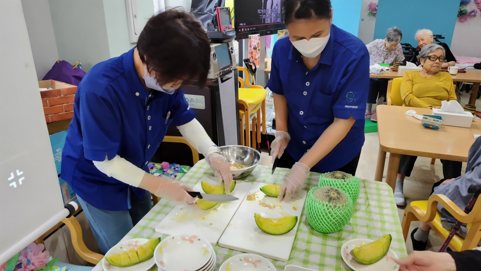 皆さんの前でマグロの解体ショーばりにメロンを切り分けて