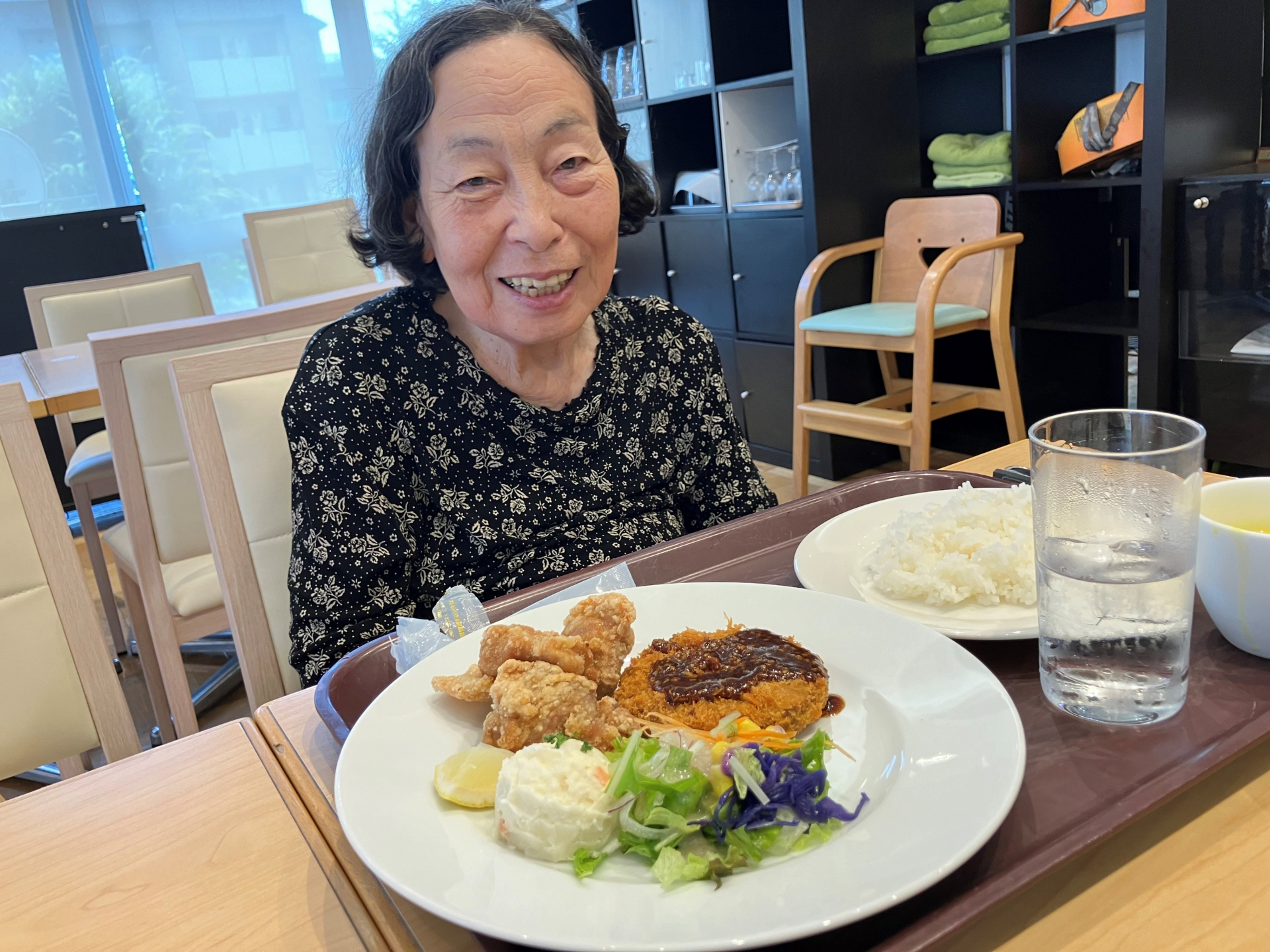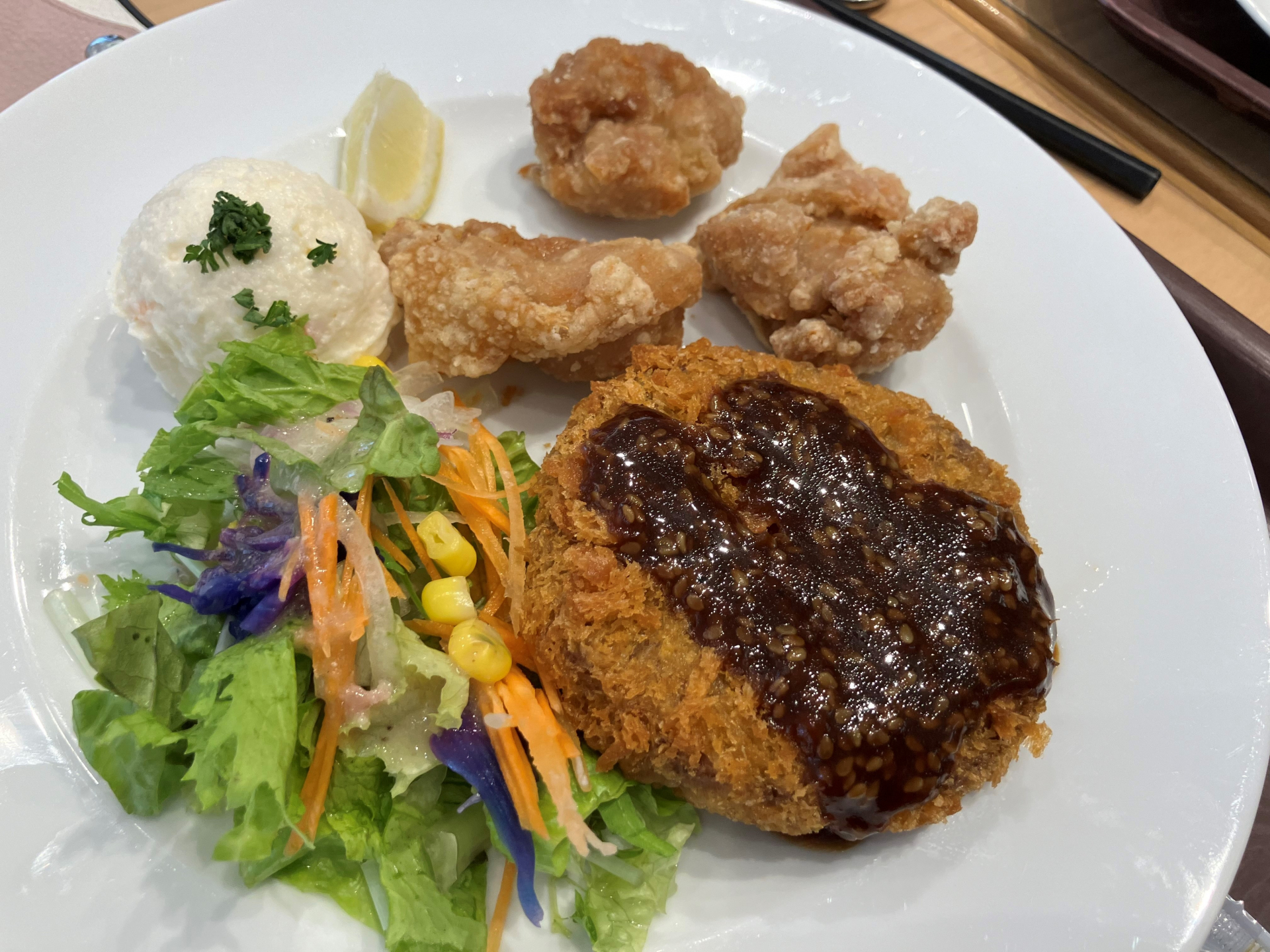 日替わりランチはなんとメンチカツに私の大好物の唐揚げ3個。