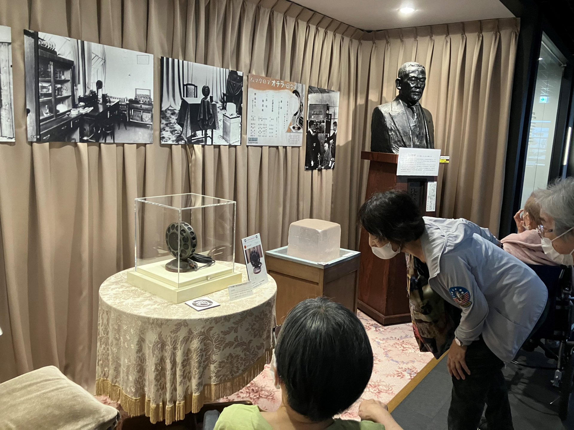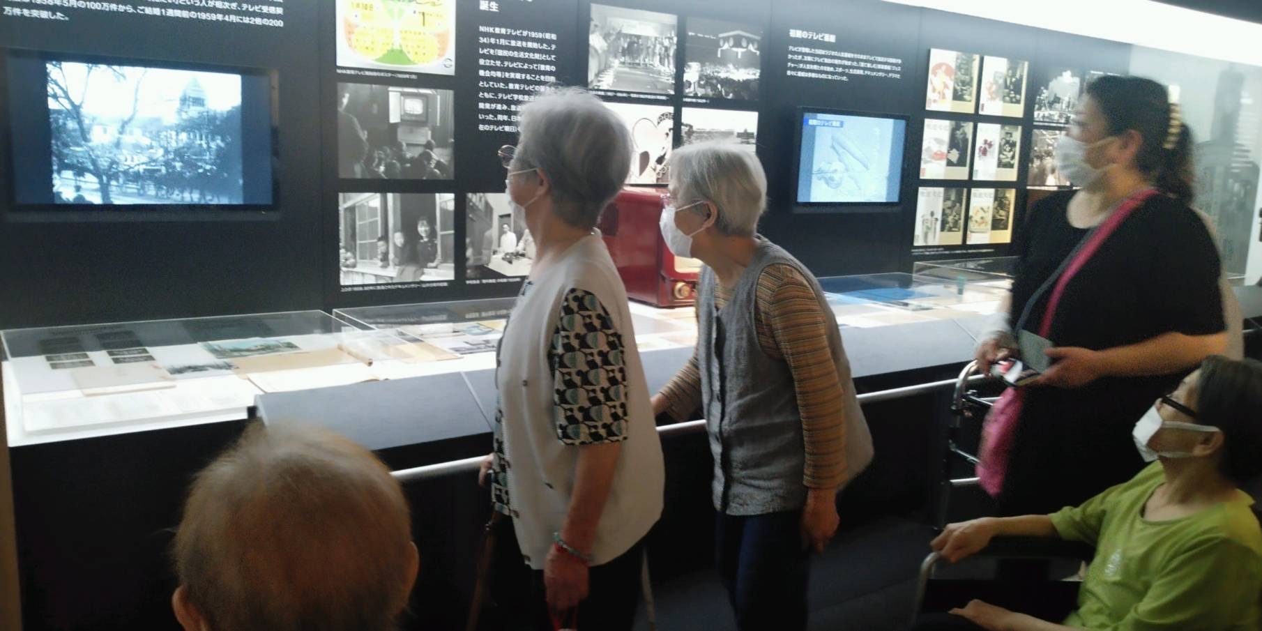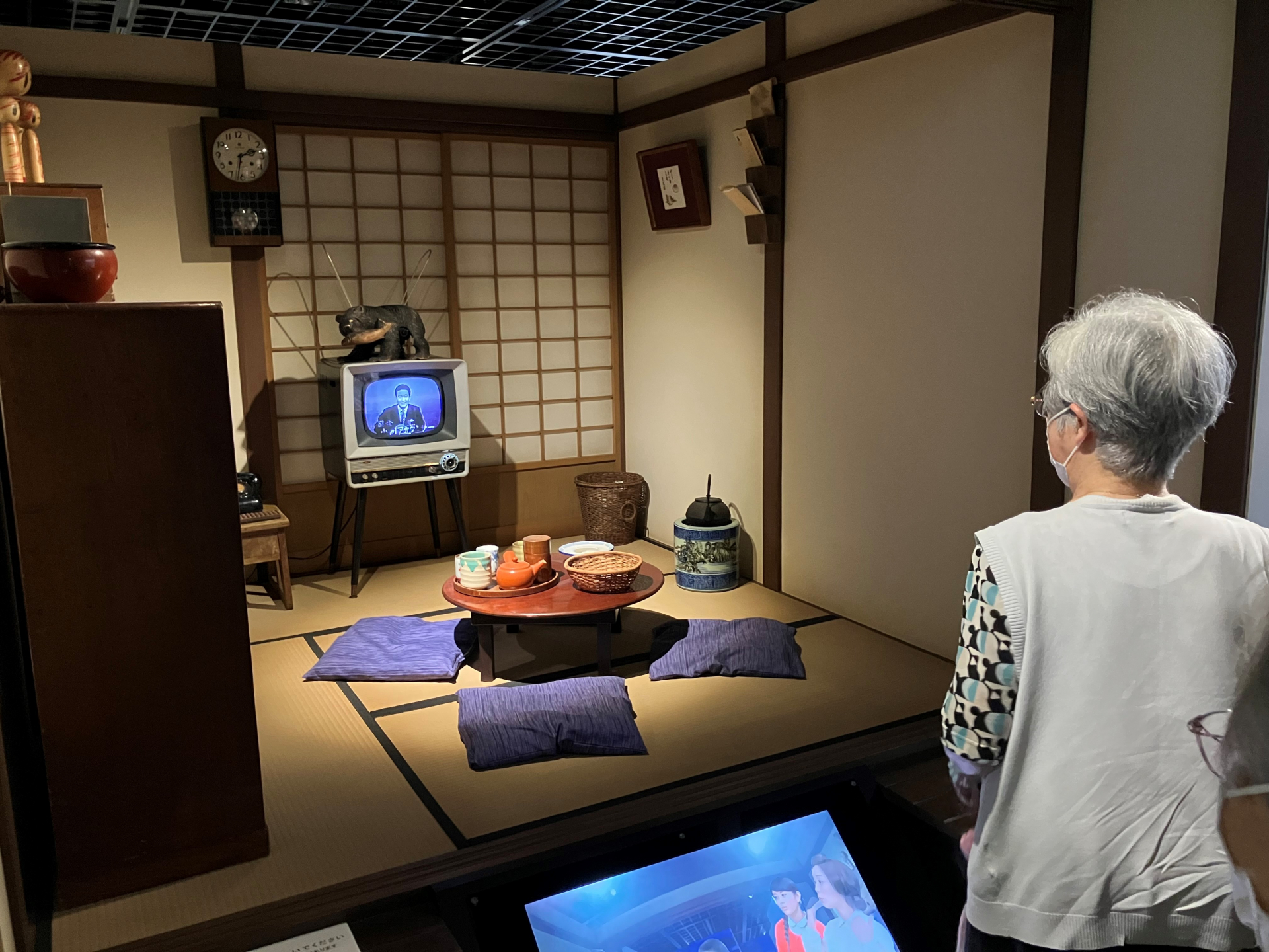 大正から昭和、平成と歴史を感じさせる掲示物やテレビ映像など