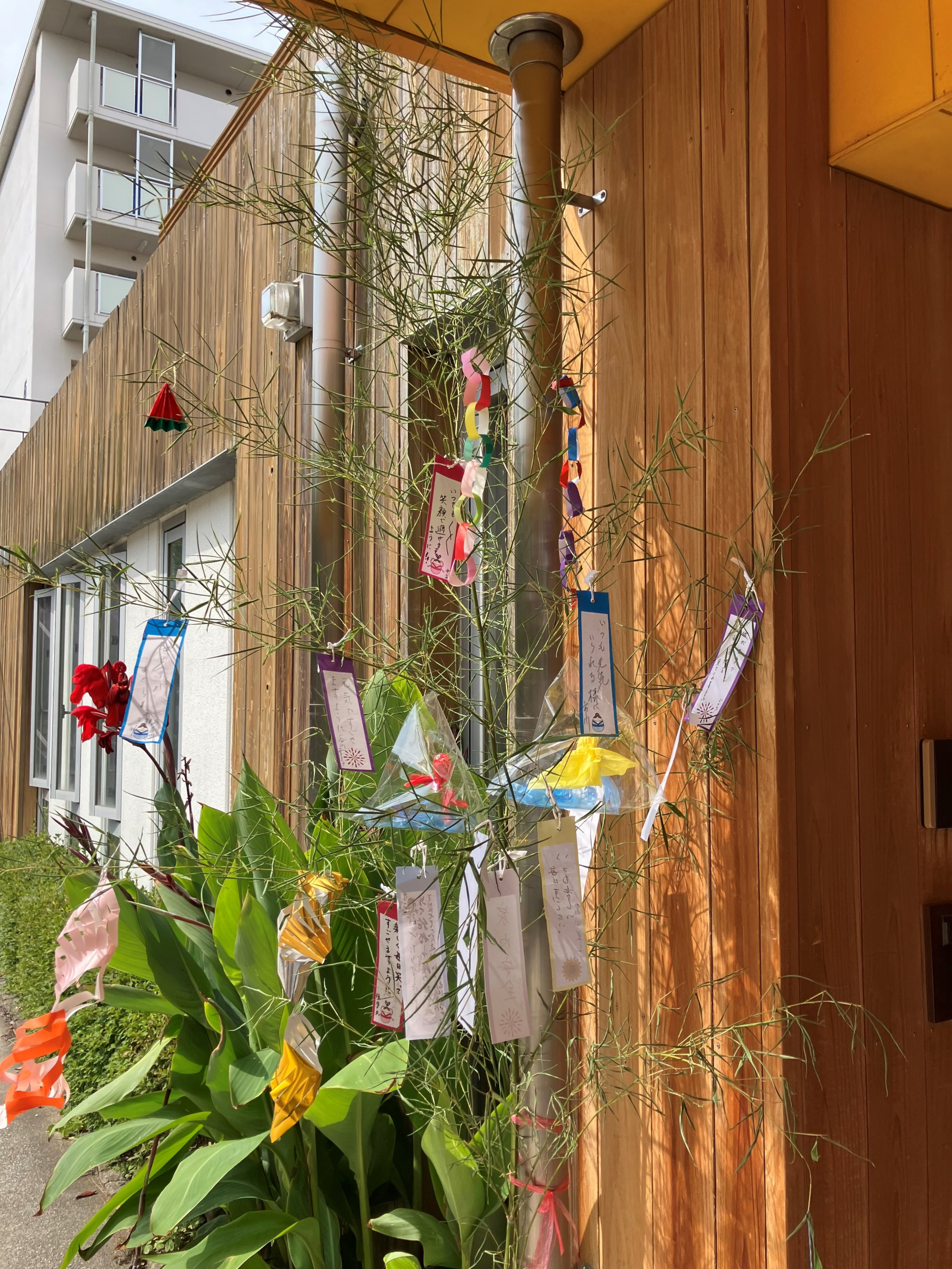 フロアの中も施設入り口にも短冊や飾り付けをした笹の葉を飾りました。