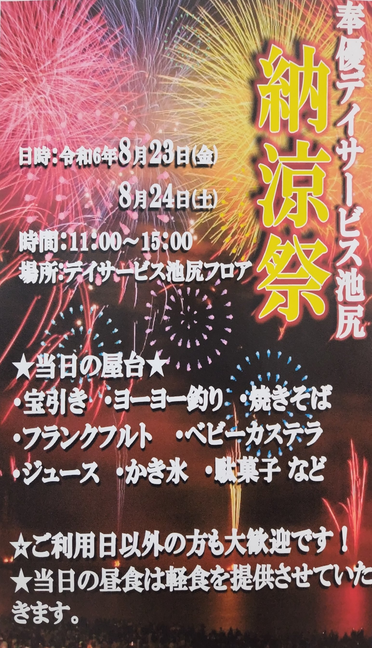 例年7月に開催していた納涼祭ですが、今年は8月に開催致します!!