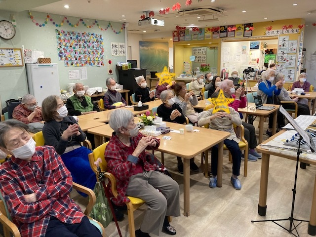 新しい月を迎える前日には、池尻デイサービスではセラピーパフォーマンス演奏会が