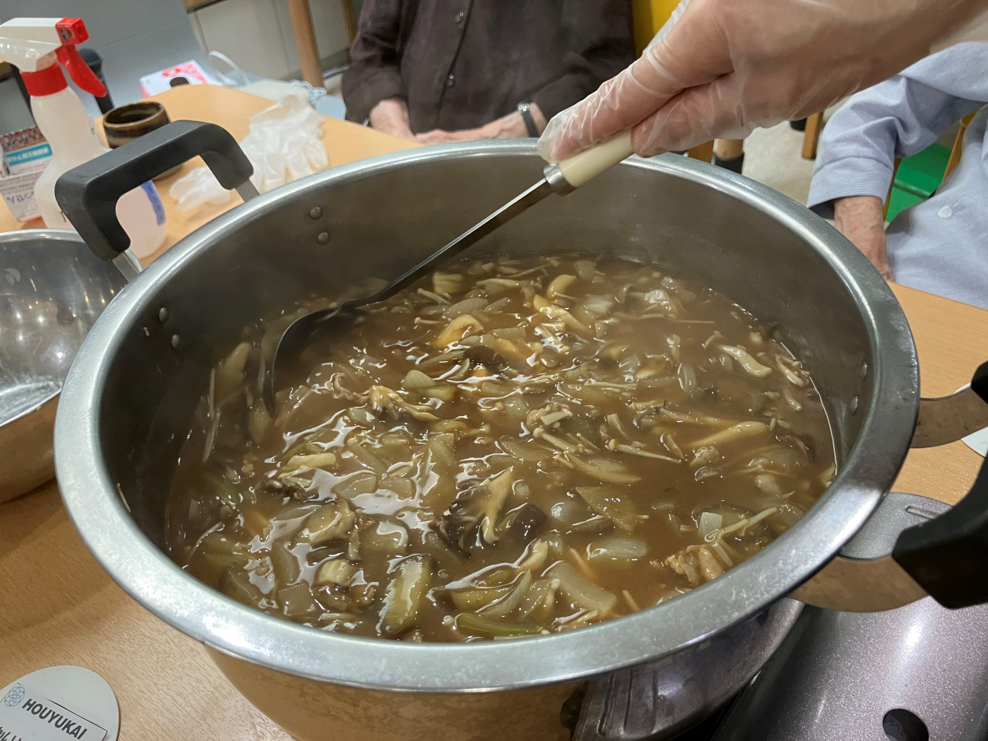 今月の調理プログラムはきのこをたっぷり入れた秋カレー作り