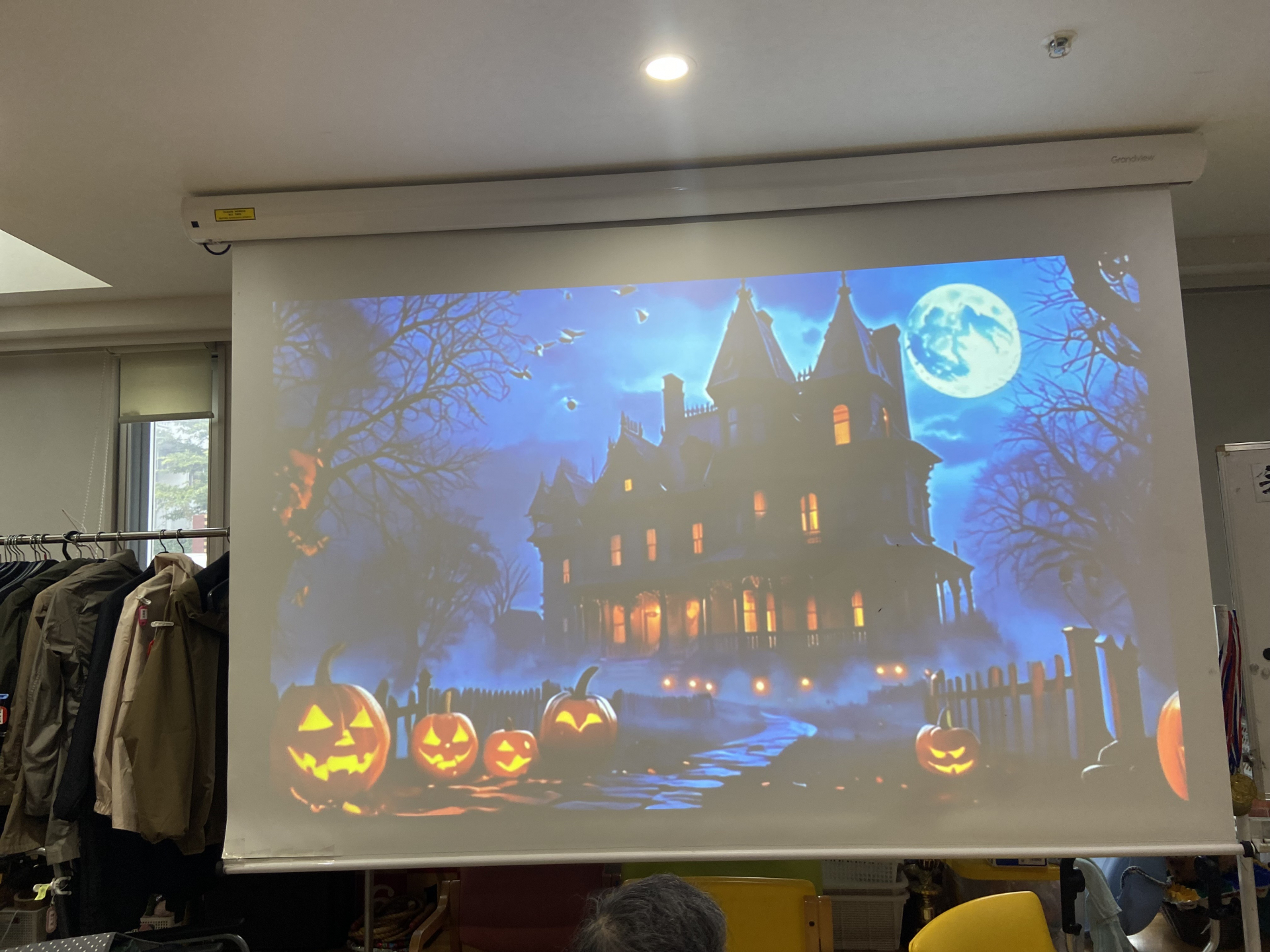 工程は簡単でハロウィンの歴史を映像や音楽と共にみんなで作れたようです。