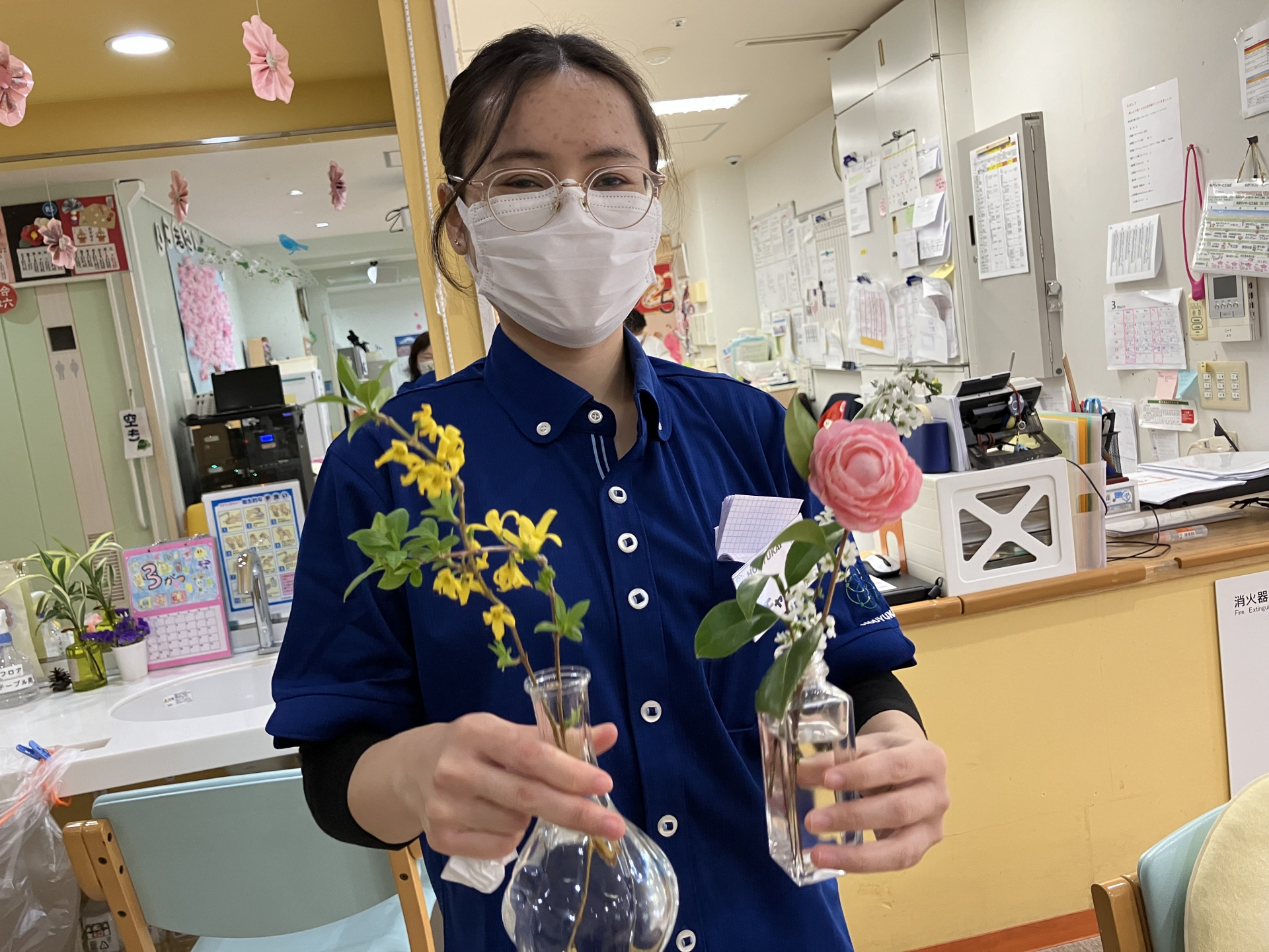 ご利用者様や職員が切り花を持ってきてくれるんです。
