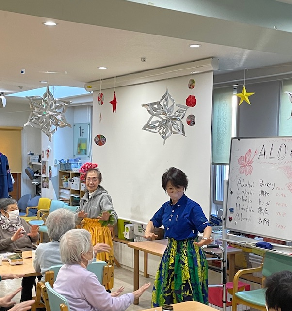 午前と午後と、2回にわたり、昔フラを踊っていたご利用者様も巻き込んで(≧▽≦)