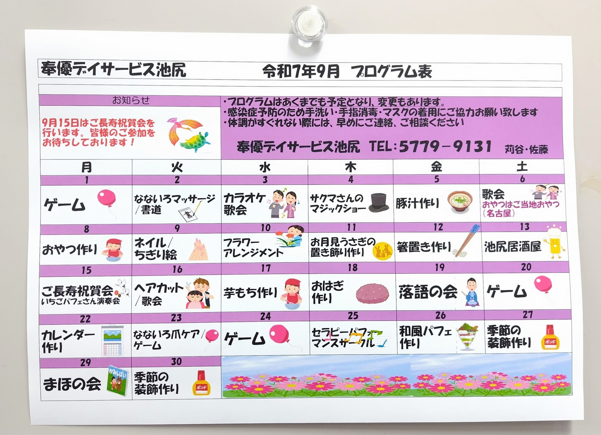 9月の目玉はなんといっても9月15日の「ご長寿祝賀会」です!!