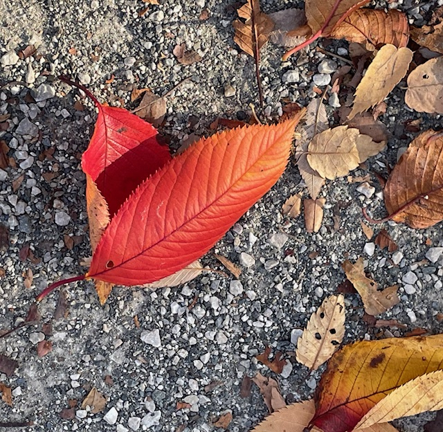 桜の葉も赤々と染まり、落ち葉を見ては「綺麗ねー、綺麗な赤色ねー」と、T様。