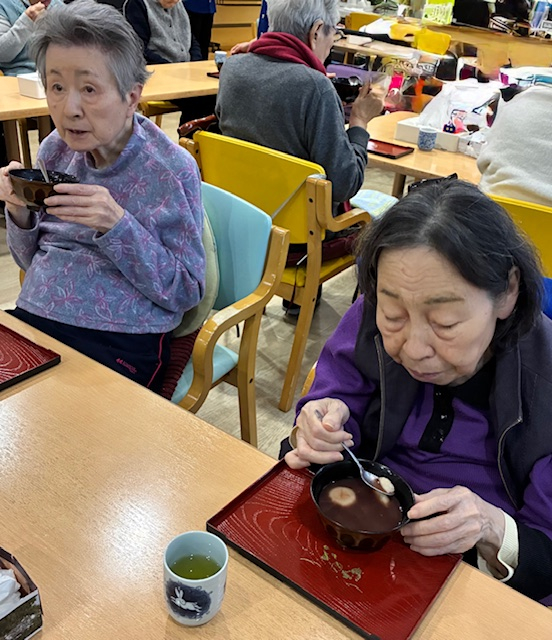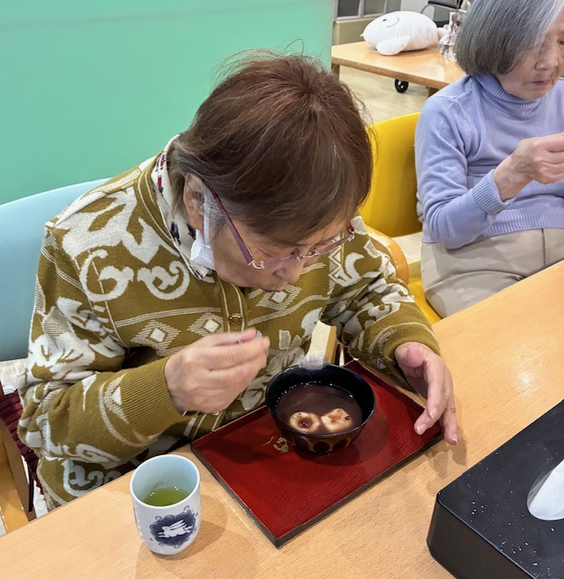 お鍋で温められた餡子汁の甘ーい匂いが、デイフロア―に漂います。