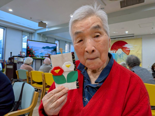 2月4日(水)は、今月お初の手工芸で「椿」のタペストリーを作ります。