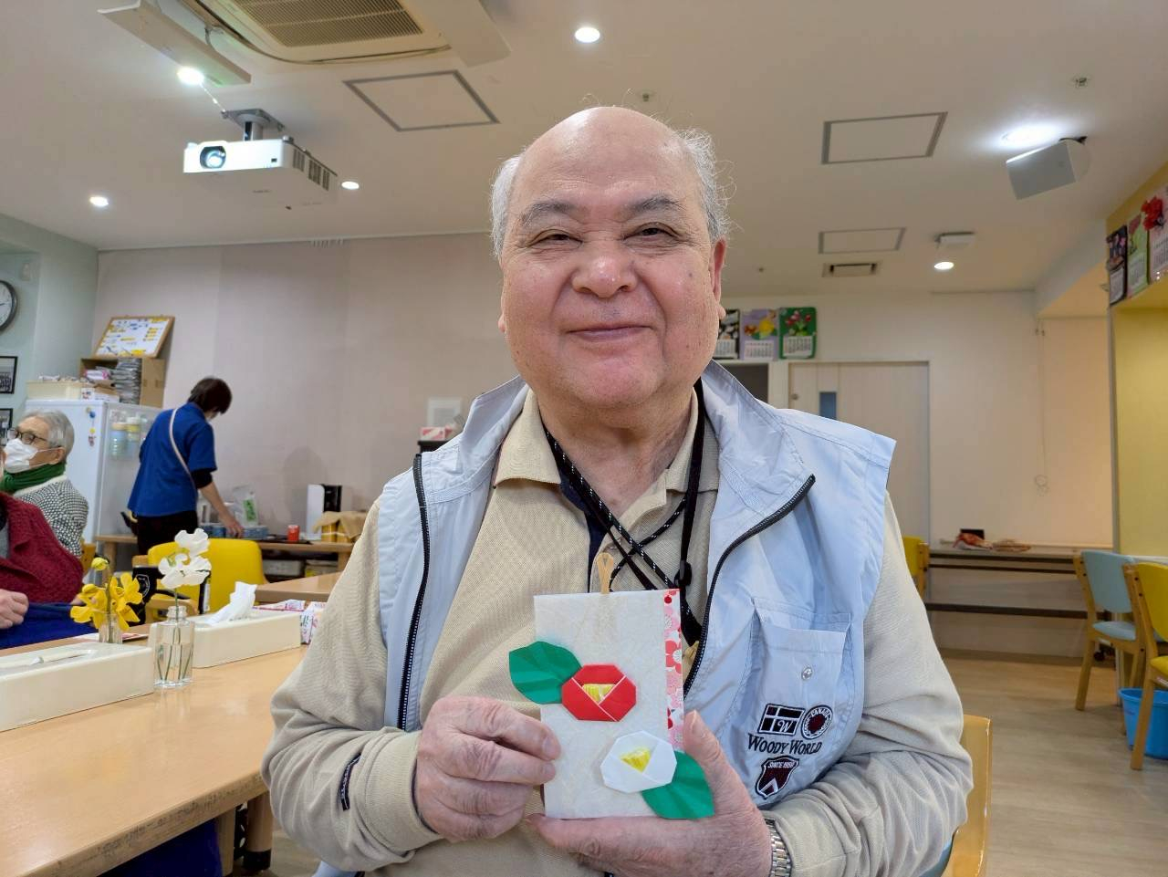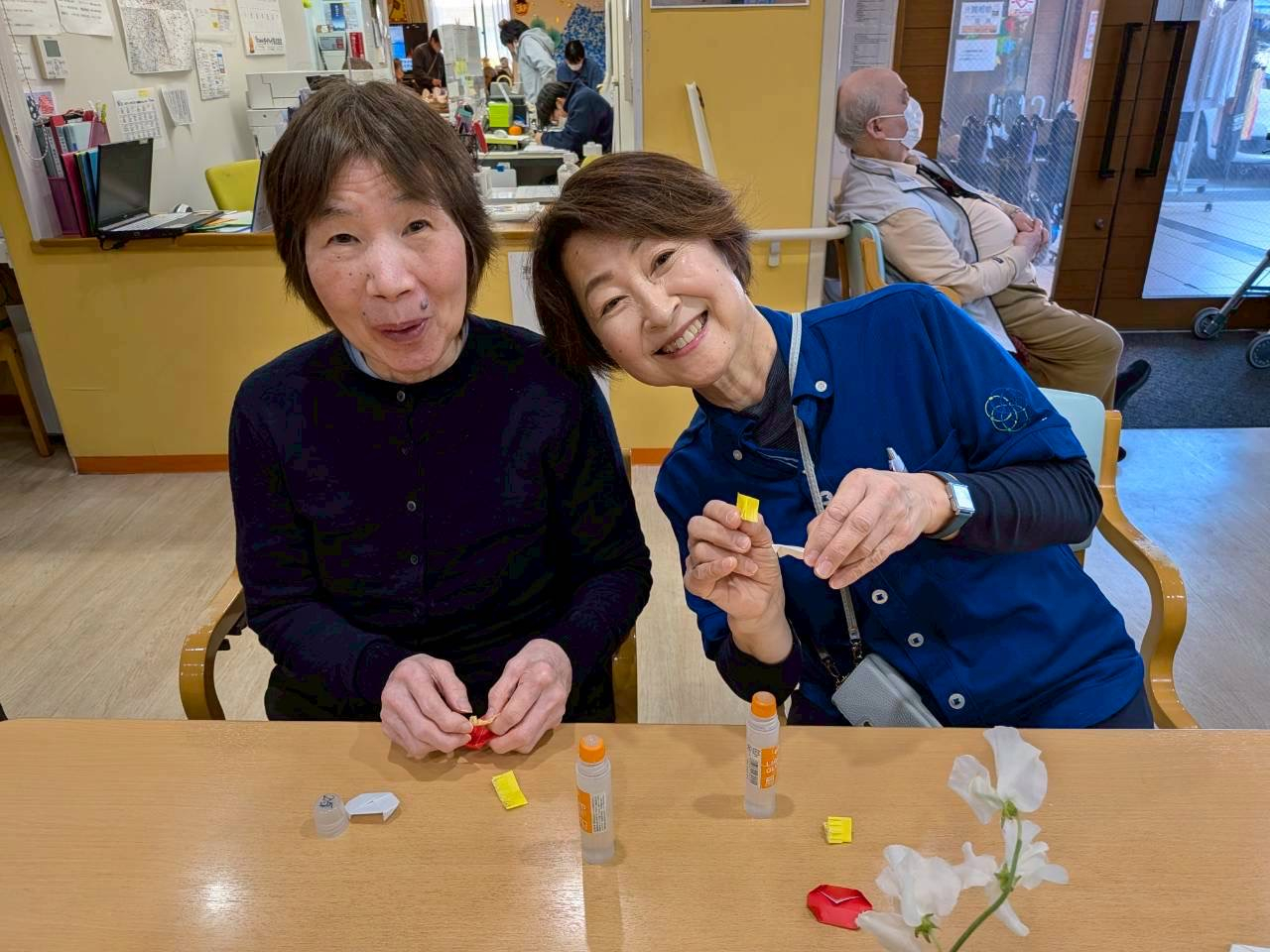 今日は先日のブログでも告知しましたが午後の活動で「椿のタペストリー作り」を行いました!