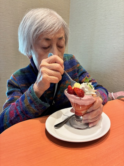 食後のデザートも結局は、全員が注文され「イチゴパルフェ」に「ぜんざい」を