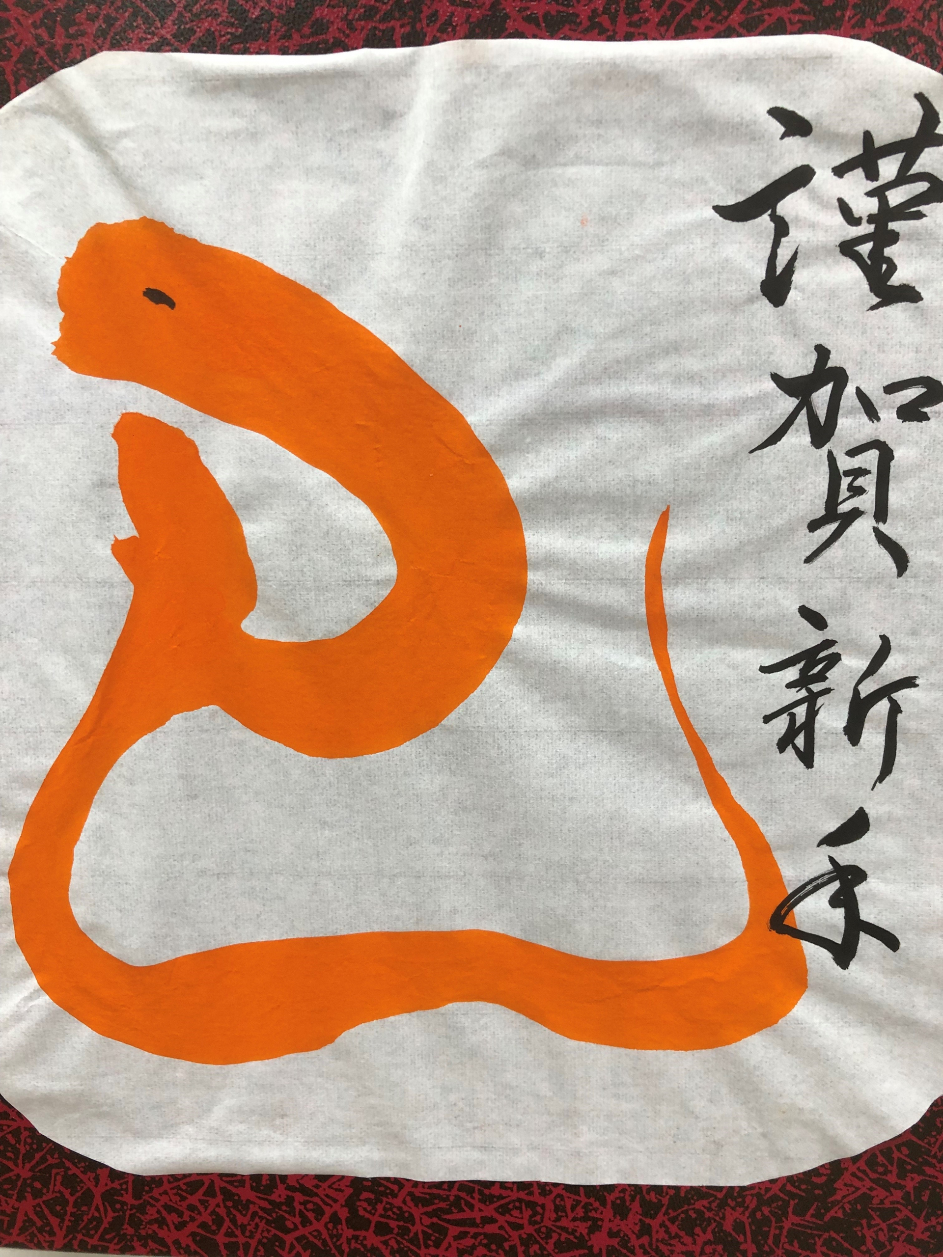 新年最初の開館でしたが、以前書道の先生に書いていただいた謹賀新年を飾ったところ