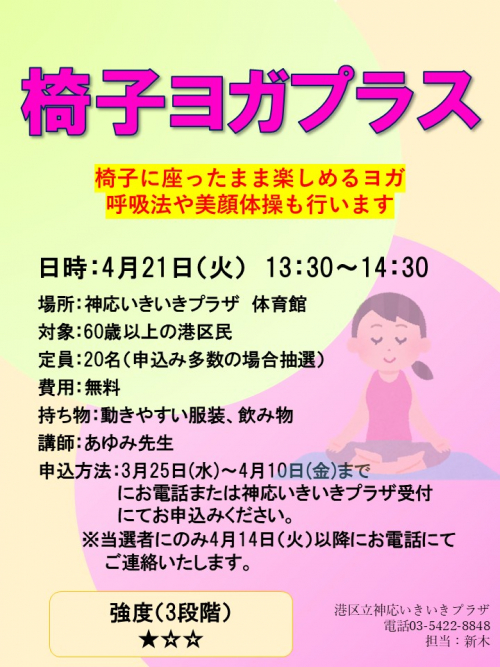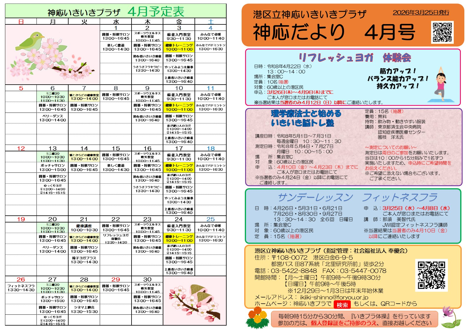 2026.03.25 お知らせ 神応だより4月号 Tweet シェアする 前の記事 2026.03.25 お知らせ 椅子ヨガプラス募集開始! 次の記事 2026.03.20 お知らせ 追加募集受付中!『うきうきフラセラピー』 一覧へ戻る