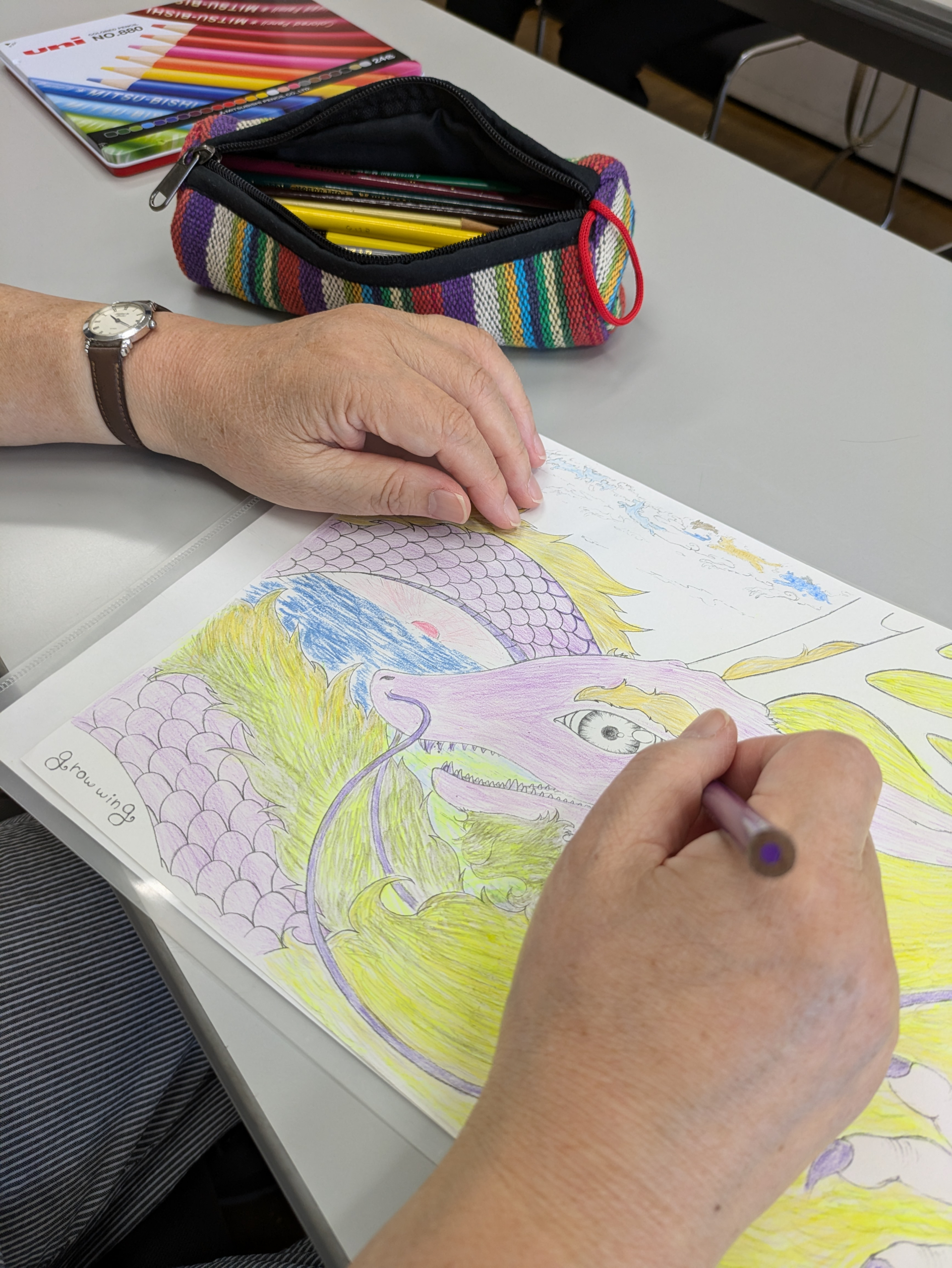 2024.06.12 活動報告 龍のぬり絵サロン☆ Tweet シェアする 本日の『龍のぬり絵サロン』☆ その日の心持ちによって染め具合も変化するとのこと。 興味深いですね✧◝(⁰▿⁰)◜✧ 次回は7月17日(水)10:00~ 皆様もぜひご一緒に☆ 職員:藤井 前の記事 2024.06.15 活動報告 ボイストレーニング☆ 次の記事 2024.06.11 活動報告 ボッチャを楽しもう 一覧へ戻る