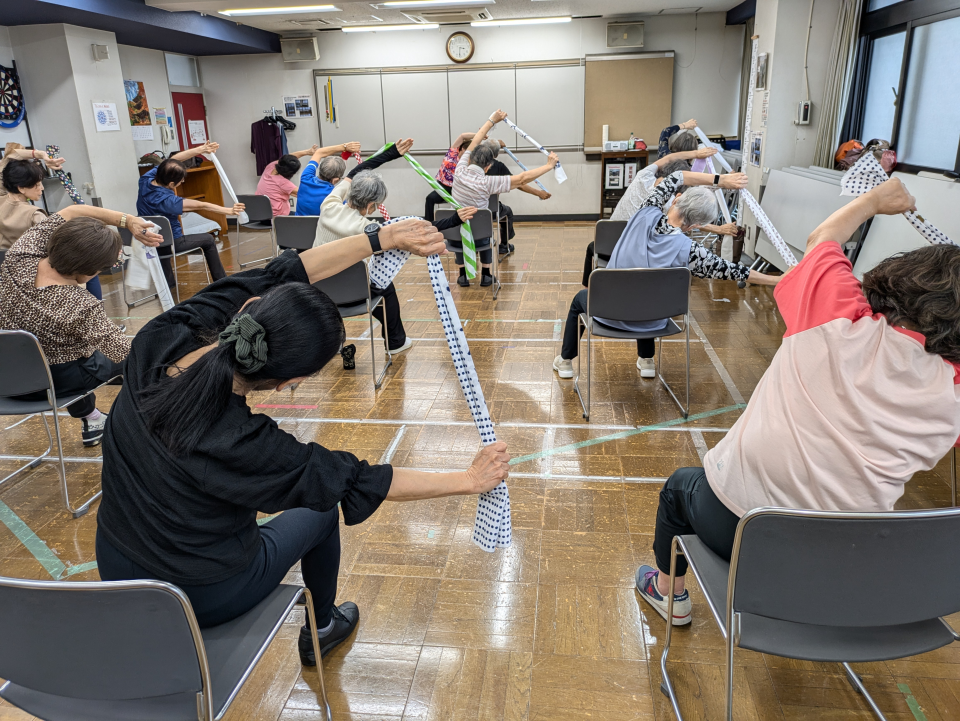 日本手ぬぐいを用いてストレッチ☆