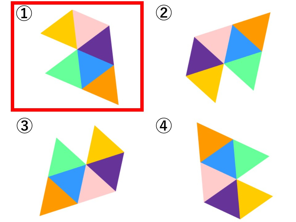 4つの図形のうち、1つだけ違う図形があります。さてそれはどれでしょう?