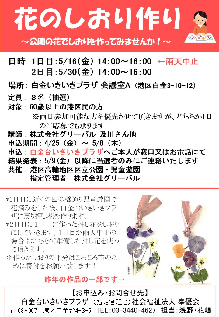 高輪地区の公園の指定管理者でいらっしゃる㈱グリーバルさんとの共催になります。