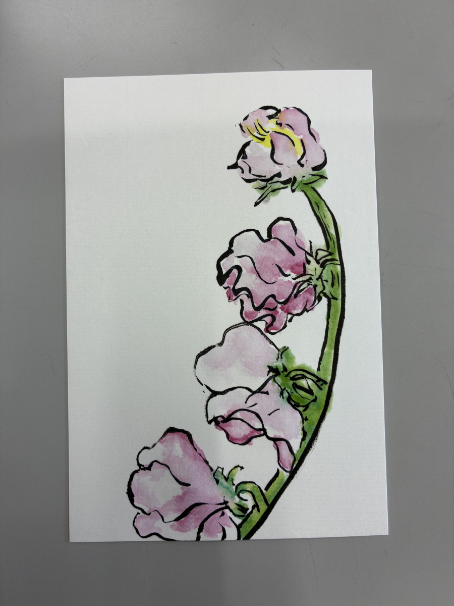 実物の花を持って来て、それを見ながら本物さながらの素晴らしい絵を描かれていました。