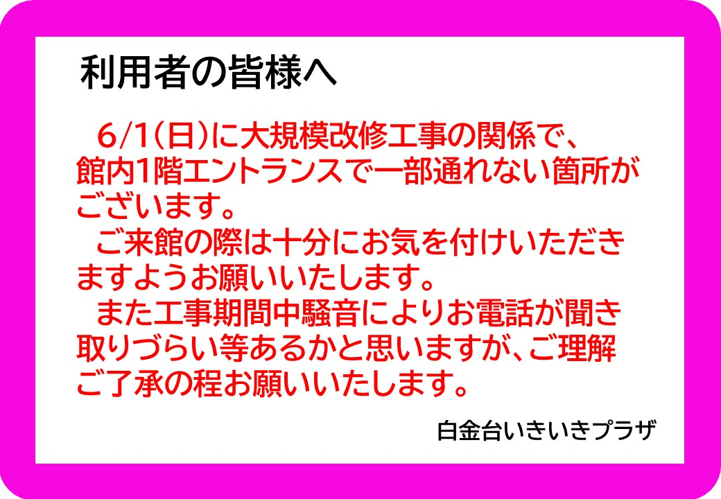 6/1(日) 工事に伴う1階エントランス利用制限について