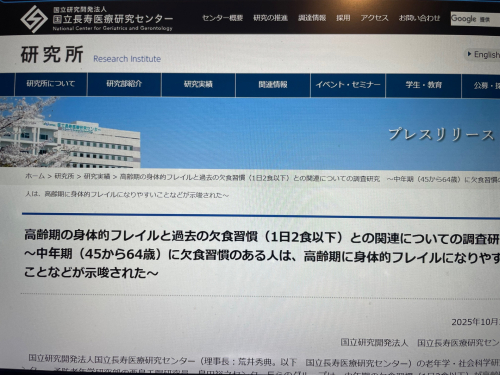 2025.10.22 眼の脳梗塞とは ニュース 2025.10.22 コーヒーでストレス解消と感染予防? ニュース 2025.10.22 寒くなったらかぼちゃ料理を! ニュース 2025.10.22 思い出を選んで残すメカニズムとは? ニュース 2025.10.22 欠食習慣とフレイルの深い関係 ニュース 2025.10.22 人間協調ロボットAIREC ニュース 2025.10.22 高齢心不全とサルコペニア ニュース 2025.10.22 「湿度が高いと豪雨は1℃当たり7%強まる」ってホント? ニュース 2025.10.22 人と湿気で空気は変わる? ニュース 2025.10.22 食生活と慢性疼痛の深い関係 ニュース 2025.10.22 顔の皮膚とビフィズス菌M16V ニュース 2025.10.20 ぬり絵サロン 活動報告 2025.10.18 おりがみサロン 活動報告 2025.10.15 人や仲間と遊ぶ「なつきマウス」 ニュース 2025.10.15 「漫才カラオケ」が面白い! ニュース 1 2 3 4 … 90