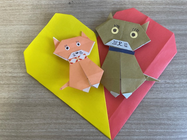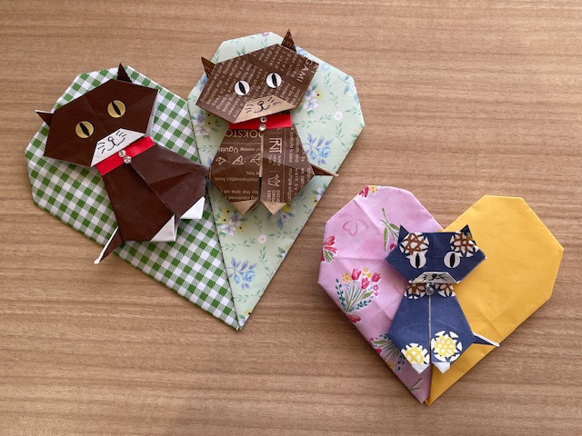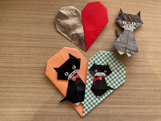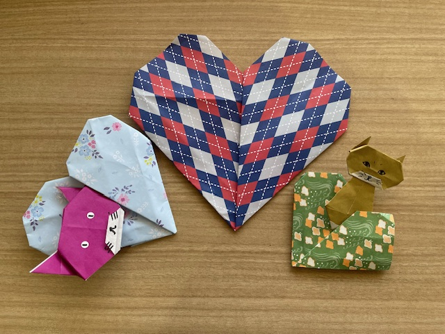 以前立体のハートを折りましたが、今回は真ん中にポケットがある平面のハートです。