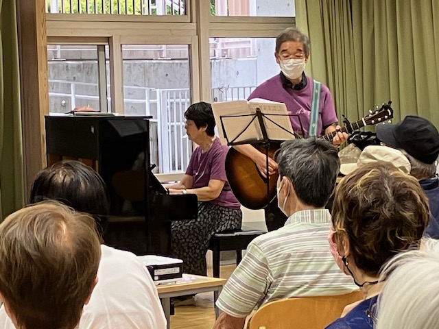 いざ始まってみると、ピアノ・ギター・ウクレレ・太鼓といった楽器を組み合わせて伴奏をし、それに合わせて参加者が歌を歌うという楽しい企画♪