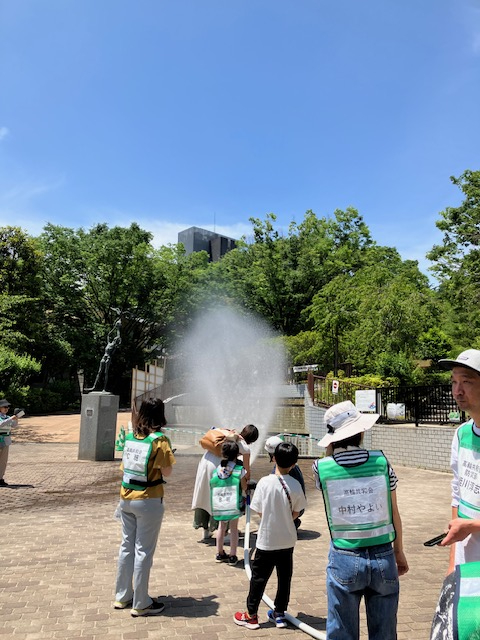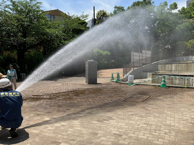 スタンドパイプ訓練も、消防士の方の説明に熱心に耳を傾けていらっしゃいました(^^♪