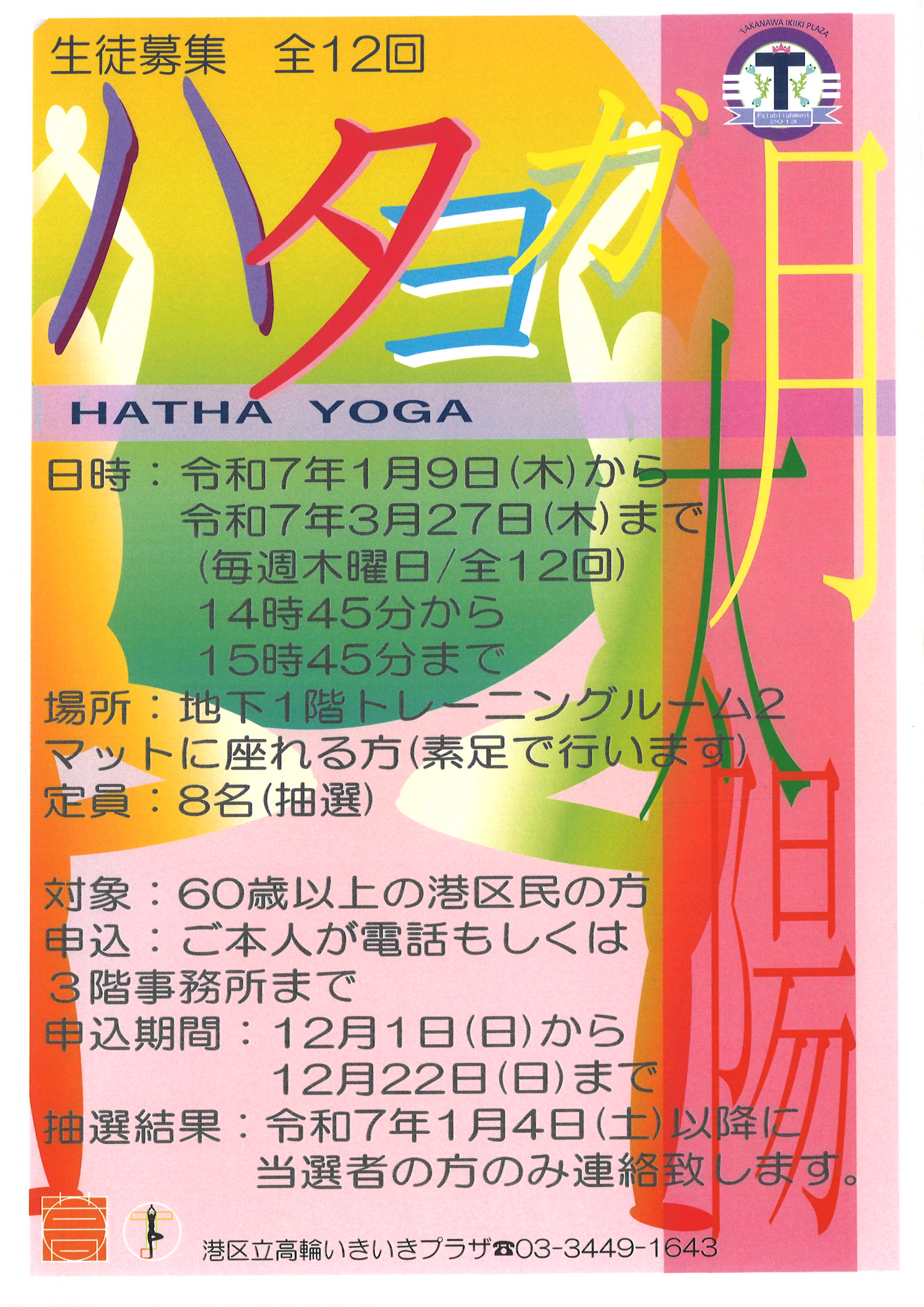 2024.11.25 お知らせ 「ハタヨガ」(2025年1月開始) 参加者募集 Tweet シェアする 「ハタヨガ」(2025年1月~3月開催のコース)の参加者を募集いたします。 高輪いきいきプラザ H.H. 前の記事 2024.11.25 お知らせ ビリヤード(Bチーム)活動報告 次の記事 2024.11.25 お知らせ 「膝が曲げにくい人のチェアヨガ」(2025年1月開始) 参加者募集 一覧へ戻る