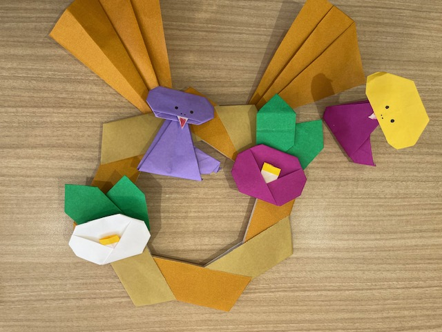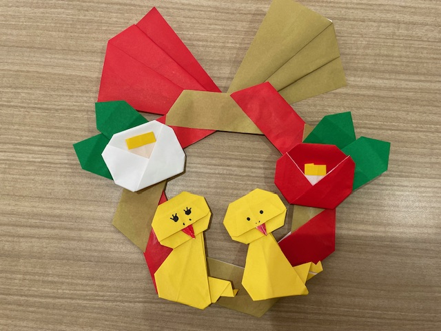 椿の花と葉っぱ、しめ縄、ヘビ、と盛りだくさんでしたが、皆さん完成させました!
