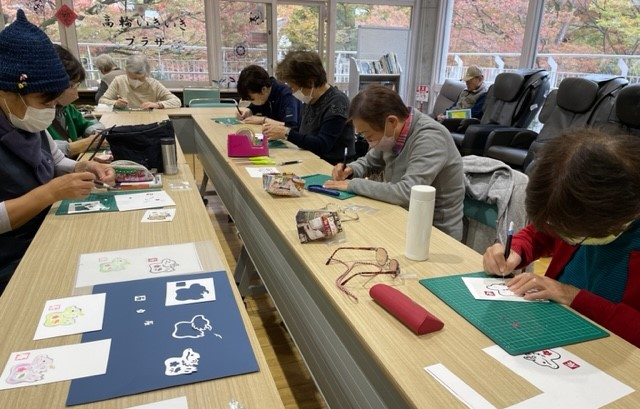 難しい作業ではありましたが、皆さん切り抜いた枠を使って、ご自宅で再度挑戦した作品を見せてくださったり、今年の年賀状作りに活かしてもらえて
