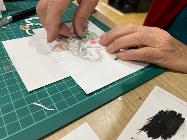 切り絵サロンで切り抜く作業はできても、色を付けていく作業が慣れずに苦戦されていた方も・・・。