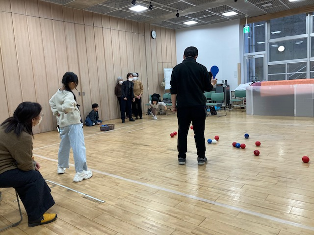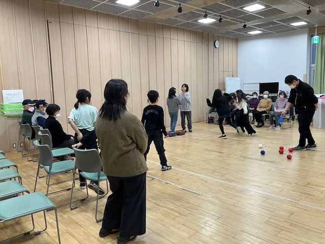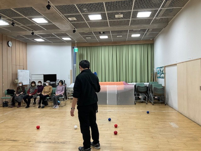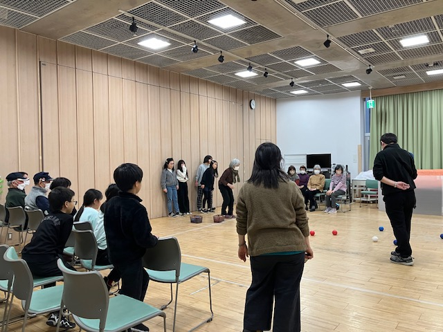 種目は「ボッチャ大会!」子供達と利用者をミックスしたチーム編成で行いました。子供たちのパワーにいきいきの利用者も負けてはいません。