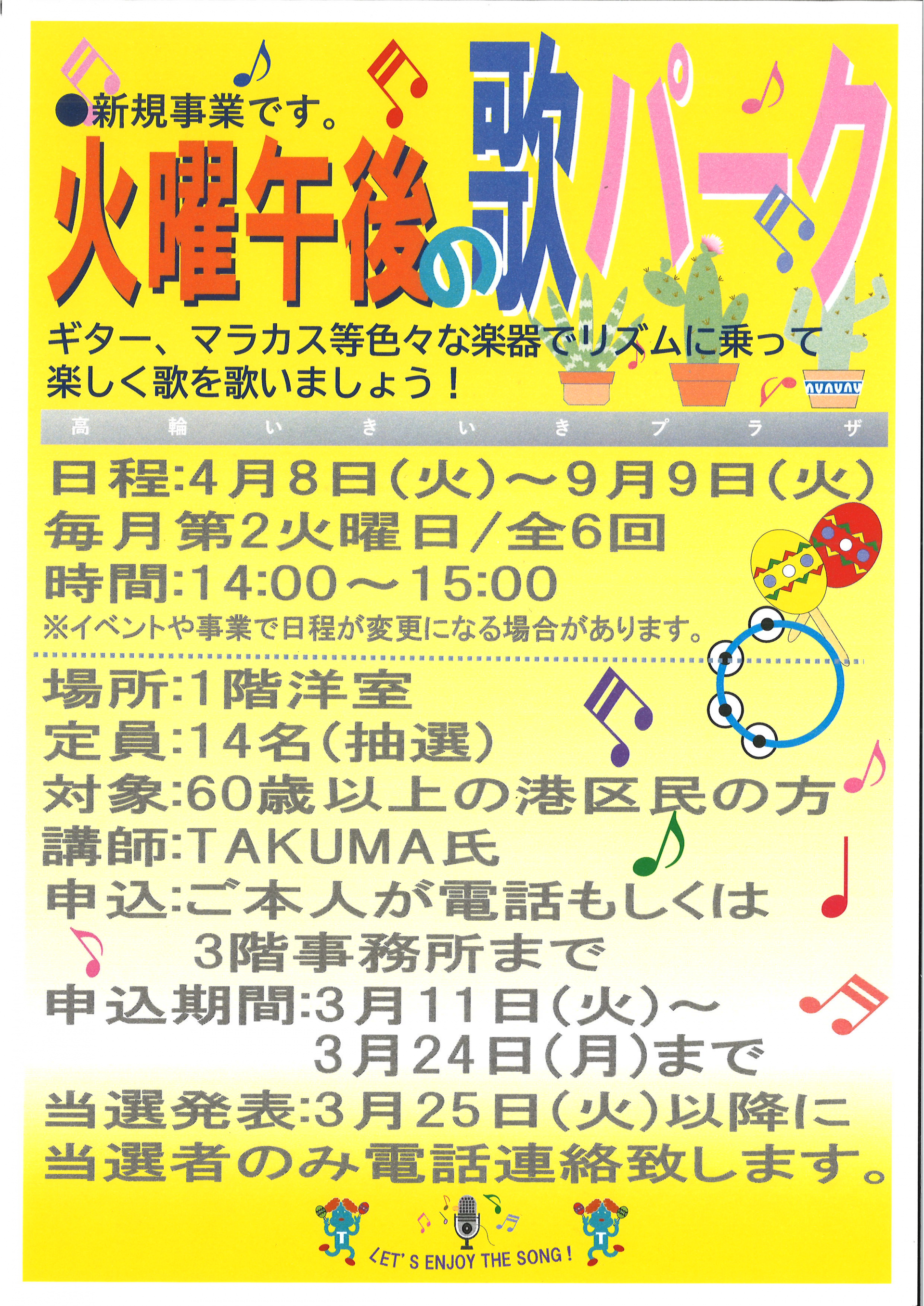 2025.02.21 活動報告 火曜午後の歌パーク Tweet シェアする 火曜午後の歌パーク 前の記事 2025.02.21 活動報告 高輪いきいき寄席 募集 次の記事 2025.02.19 活動報告 高輪園芸部 一覧へ戻る