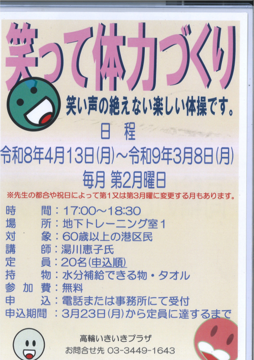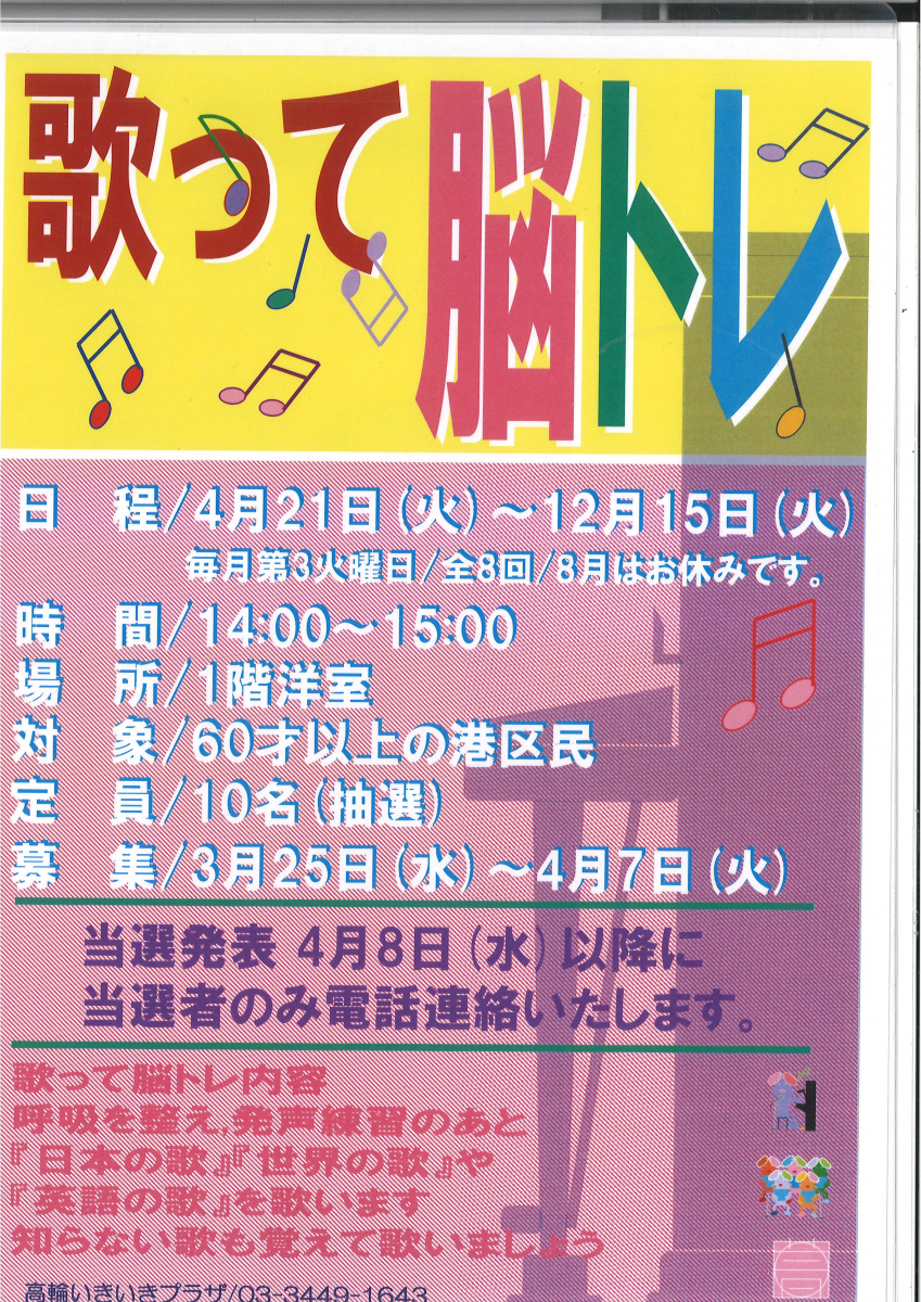 2026.03.27 お知らせ 歌って脳トレ Tweet シェアする 前の記事 2026.03.27 お知らせ 笑って体力づくり 次の記事 2026.03.27 お知らせ 緑内障と睡眠時無呼吸症候群 一覧へ戻る