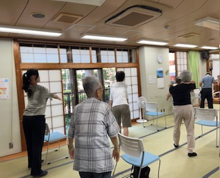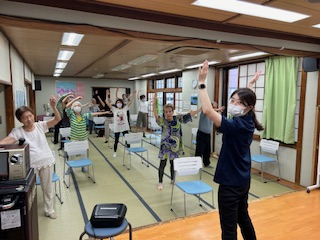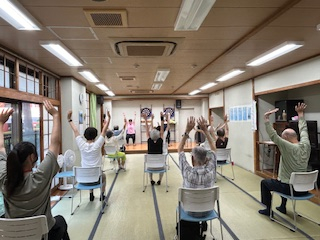 そのあとは椅子での体操をしました。体操は日替わりで少しづつ内容が変わります。