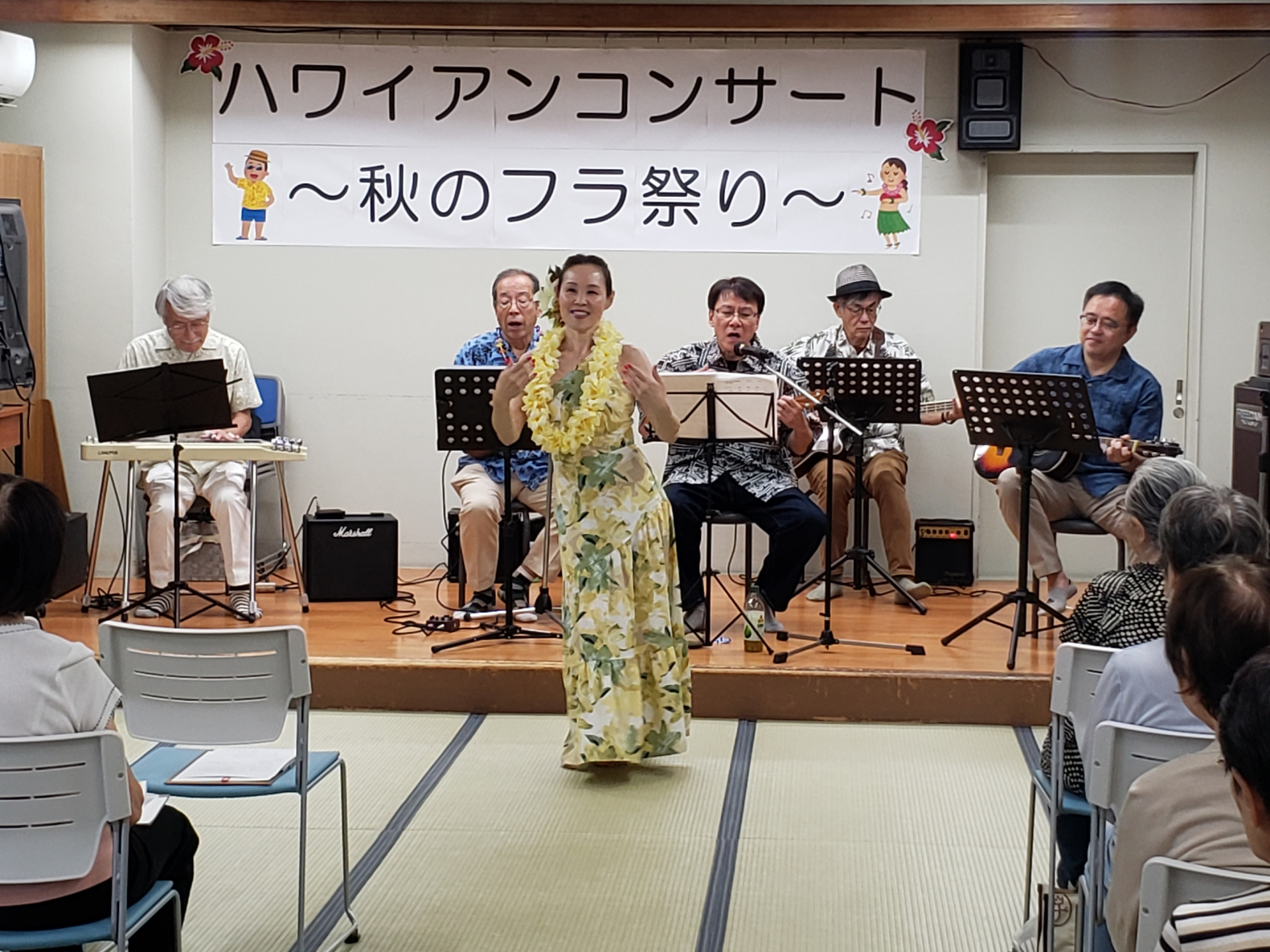 豊岡いきいきプラザでは、10/19(土)にタカナワイアンズによる、ハワイアンコンサートを開催いたしました。