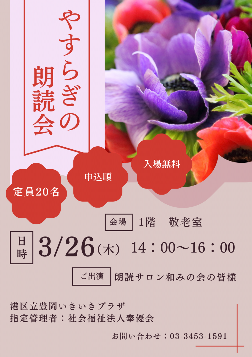 ○やすらぎの朗読会参加者募集中○