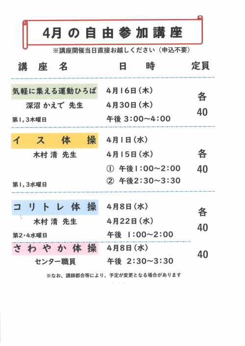 2026.04.14 NEW 絵手紙サークル「チョットの会」展示会 活動報告 2026.04.14 NEW eスポーツギャザリング開催! 活動報告 2026.04.14 NEW 3/17(火)俳句実作講座 最終回 活動報告 2026.04.08 3月の新聞ちぎり絵 活動報告 2026.04.08 HP検索2月 活動報告 2026.04.08 悪質詐欺にはご用心!【金融トラブルを防ぎましょう!】 活動報告 2026.04.06 カローリング大会 ななすぽ杯からのご報告です! 活動報告 2026.04.06 4月・5月開催 単発講座追加募集について お知らせ 2026.04.06 4月・5月開講 単発講座 当選者一覧 お知らせ 2026.03.28 初心者のための大人の鍵盤ハーモニカ ミニ発表会 活動報告 2026.03.28 3月19日お便りを折るボランティア‼ 活動報告 2026.03.28 2月のJOTOサロン 活動報告 2026.03.25 4月自由参加日程表 お知らせ 2026.03.25 城東ふれあいセンター4月の予定表 お知らせ 2026.03.25 城東ふれあいセンター4月のおたより お知らせ 1 2 3 … 43