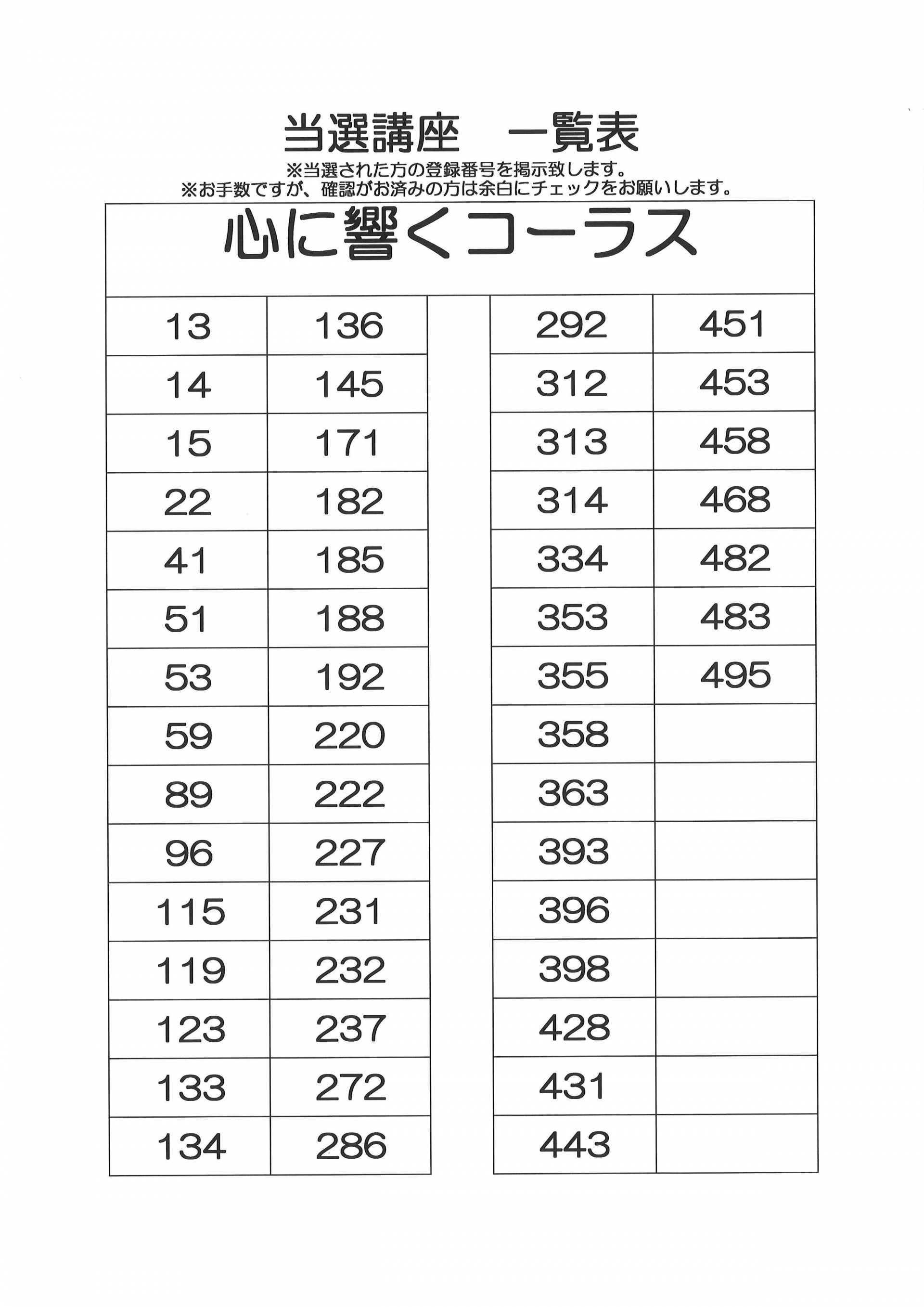 2024.03.08 ニュース 【城東ふれあいセンター】定期講座抽選結果(教養講座) Tweet シェアする 皆さま、こんにちは 定期講座の抽選結果をお知らせします 番号は「申込番号」でご確認ください ご確認をお願いします 城東ふれあいセンター A.S 前の記事 2024.03.09 ニュース パステル体験講座 次の記事 2024.03.08 ニュース 【城東ふれあいセンター】定期講座抽選結果(健康講座) 一覧へ戻る