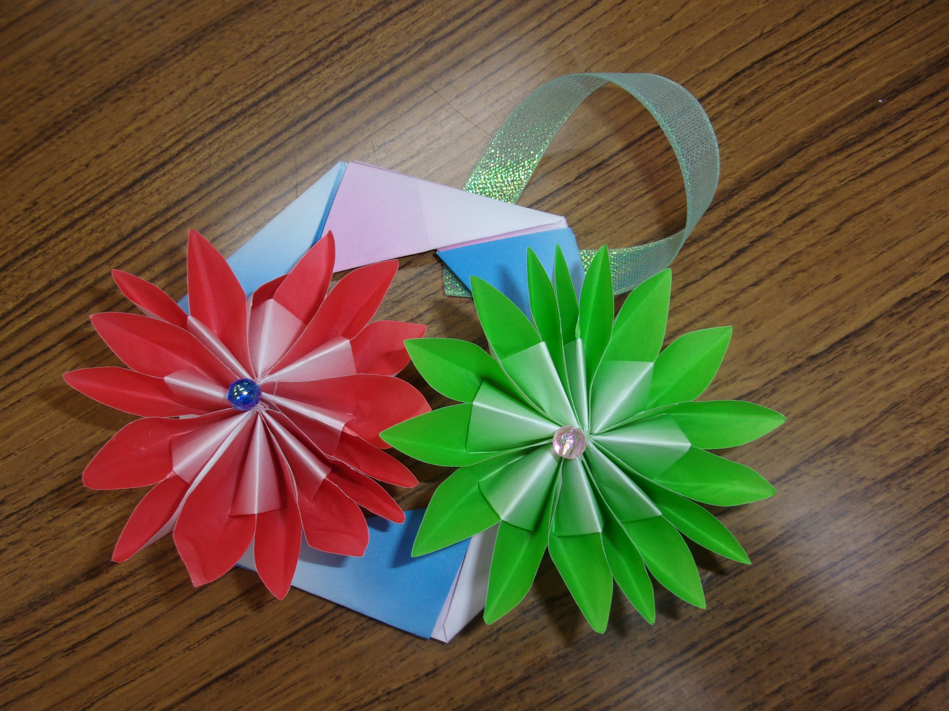 1枚の折り方は簡単ですが、合わせる事によって綺麗な花になりますね(^^♪