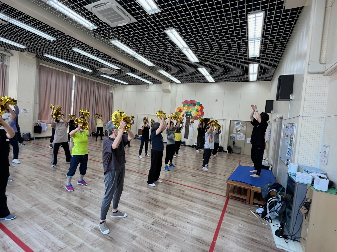 城東ふれあいセンターでポンポン持っての踊る「チアダンス」は圧巻です