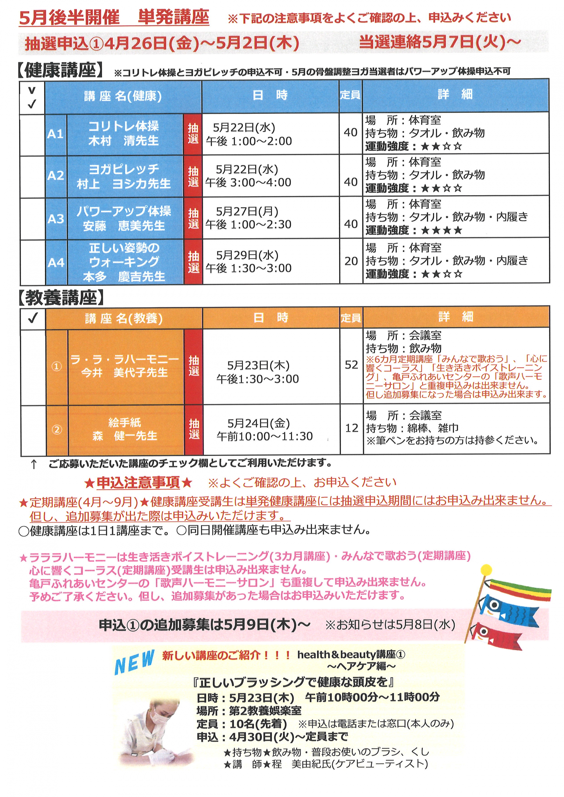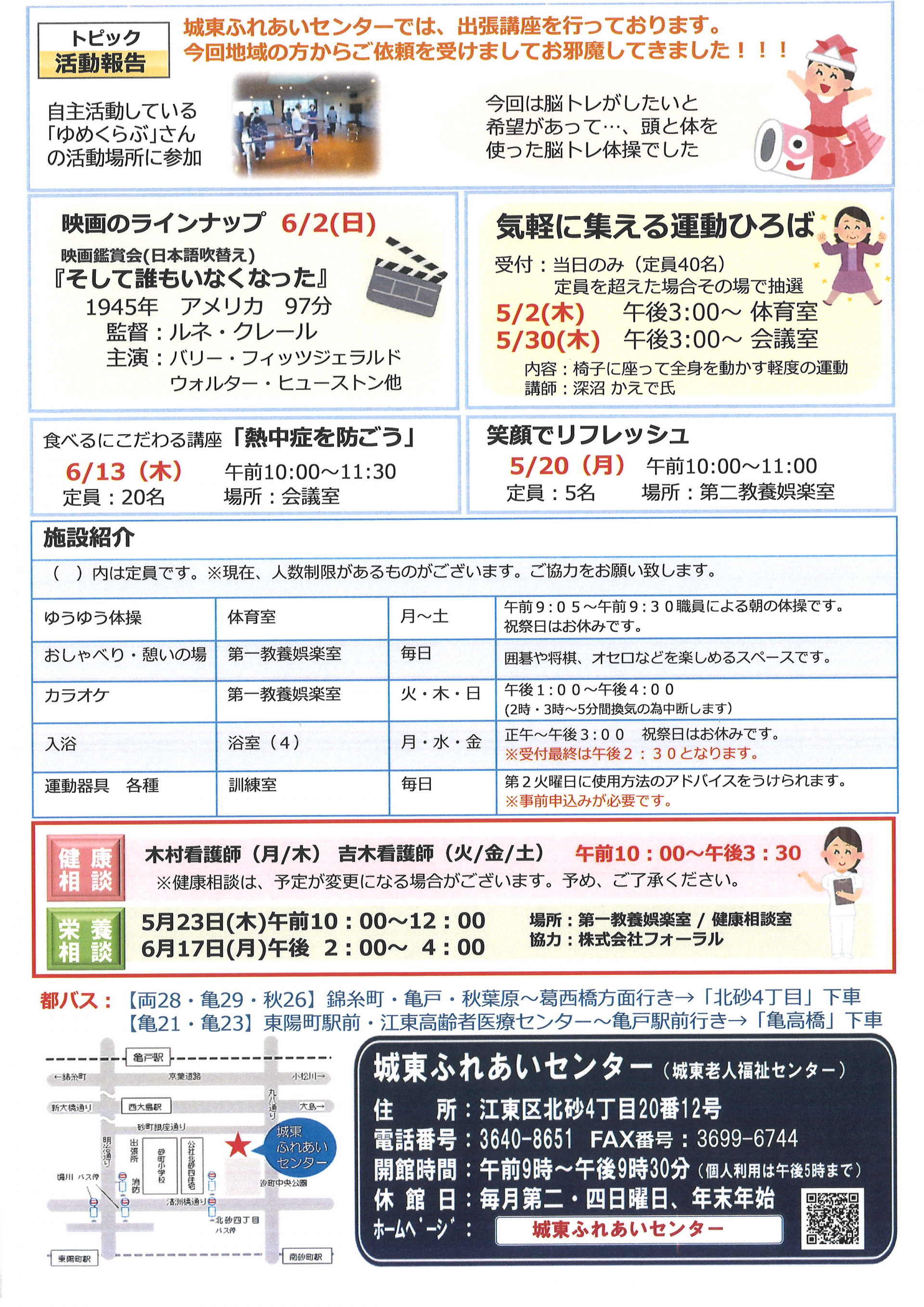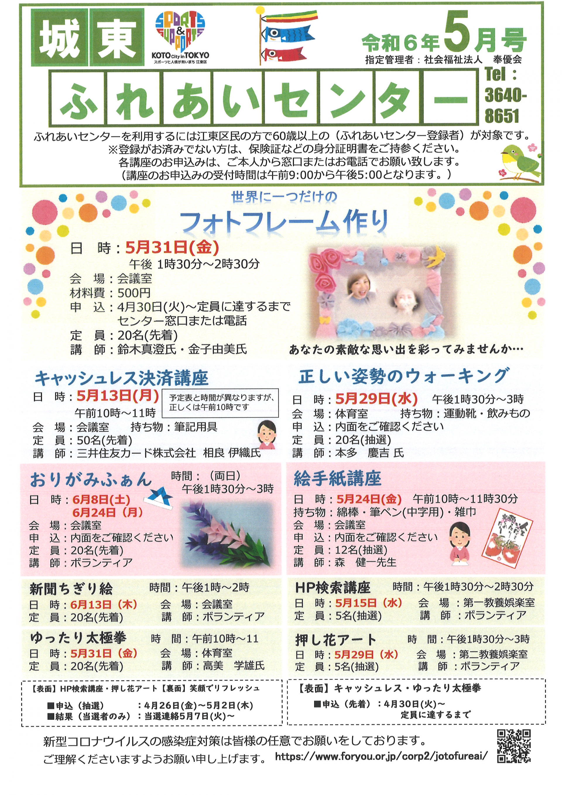 2024.04.25 お知らせ 城東ふれあいセンター おたより5月号 Tweet シェアする 皆さまこんにちは(^^♪ 城東ふれあいセンターおたより5月号が完成しました! 様々な講座が開催予定ですのでご確認下さい。 城東ふれあいセンター A.S 前の記事 2024.04.25 お知らせ 城東ふれあいセンター 5月予定表 次の記事 2024.04.24 お知らせ 「4月のおりがみふぁん」 一覧へ戻る