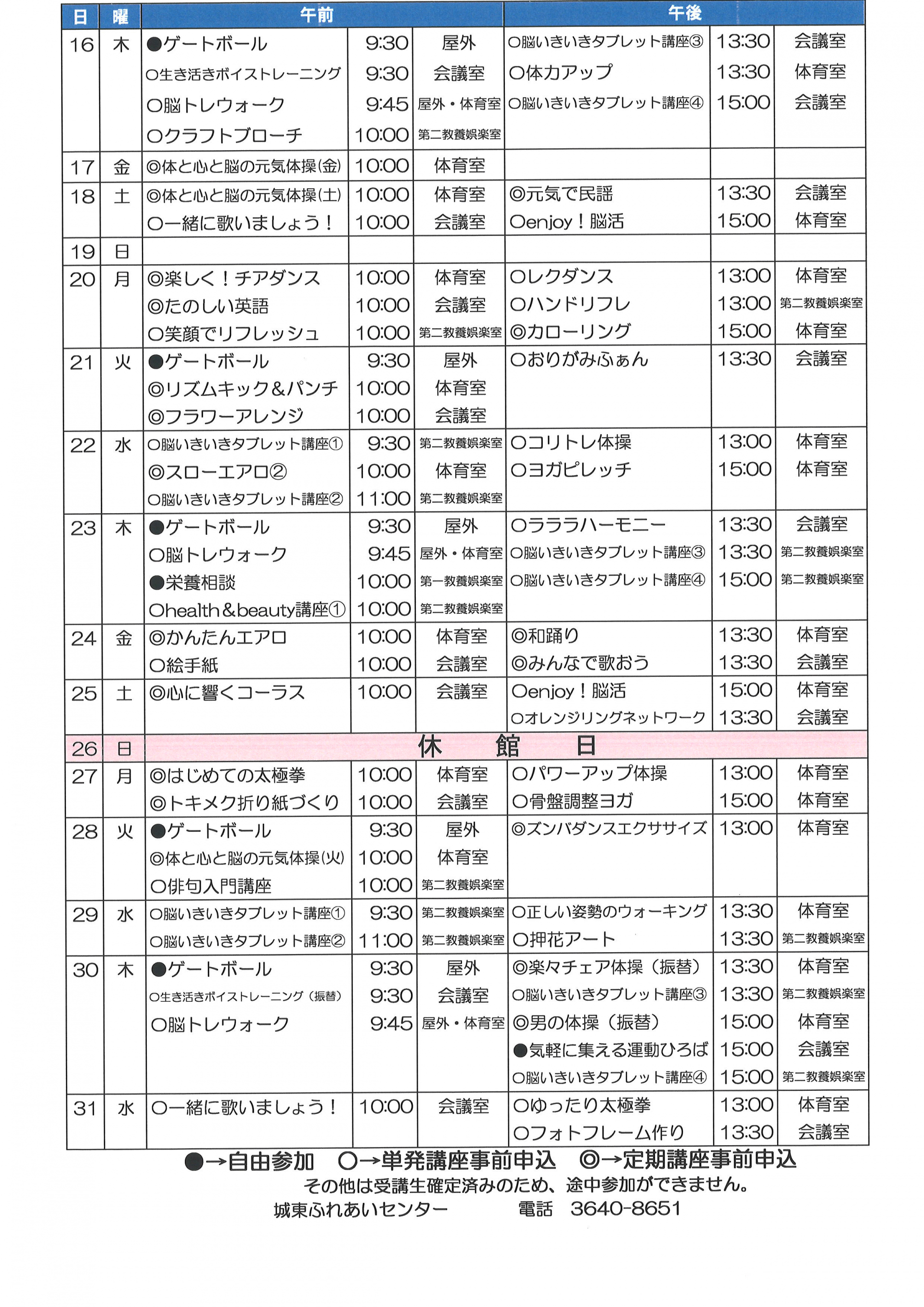 2024.04.25 お知らせ 城東ふれあいセンター 5月予定表 Tweet シェアする 皆さま、こんにちは 5月の予定表をお知らせします 皆さまのご予定を立てる際に、ご活用いただけると幸いです 城東ふれあいセンター 前の記事 2024.04.25 お知らせ ポスター募集 次の記事 2024.04.25 お知らせ 城東ふれあいセンター おたより5月号 一覧へ戻る