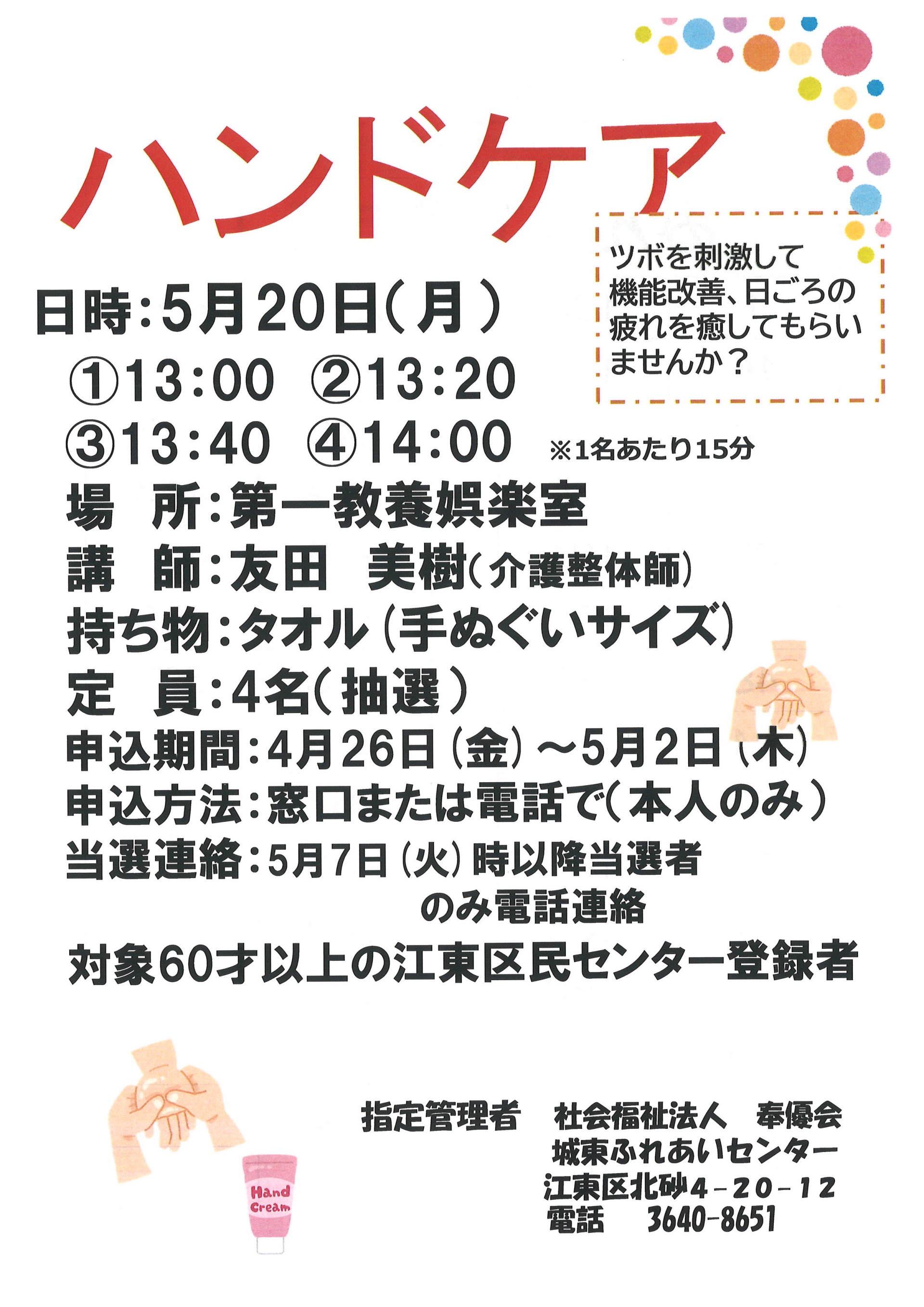 2024.04.25 お知らせ ポスター募集 Tweet シェアする ポスター募集!! 皆さまのお申込みをお待ちしております 城東ふれあいセンター KC 前の記事 2024.04.26 お知らせ 5月開催単発講座・特別講座 次の記事 2024.04.25 お知らせ 城東ふれあいセンター 5月予定表 一覧へ戻る