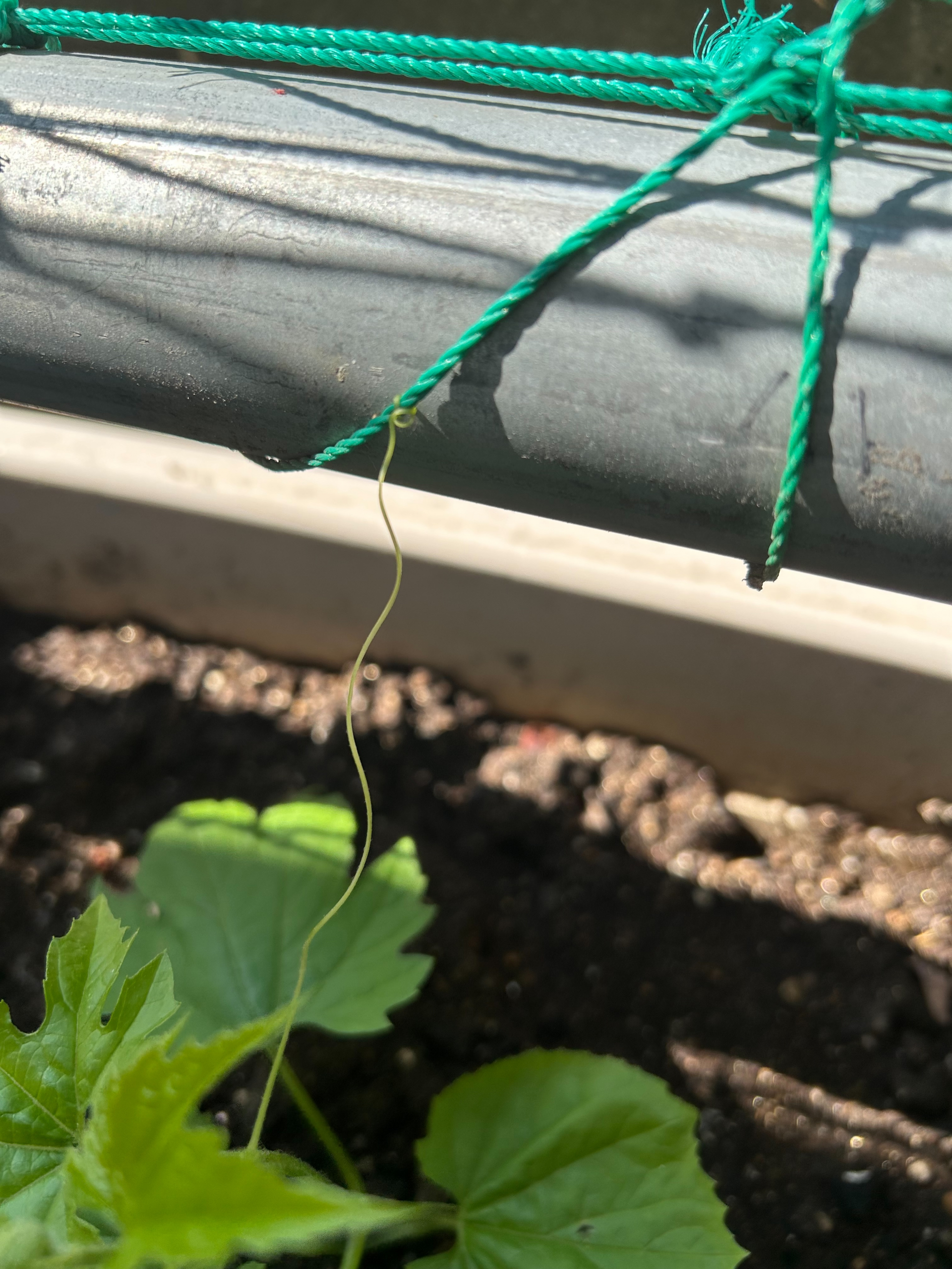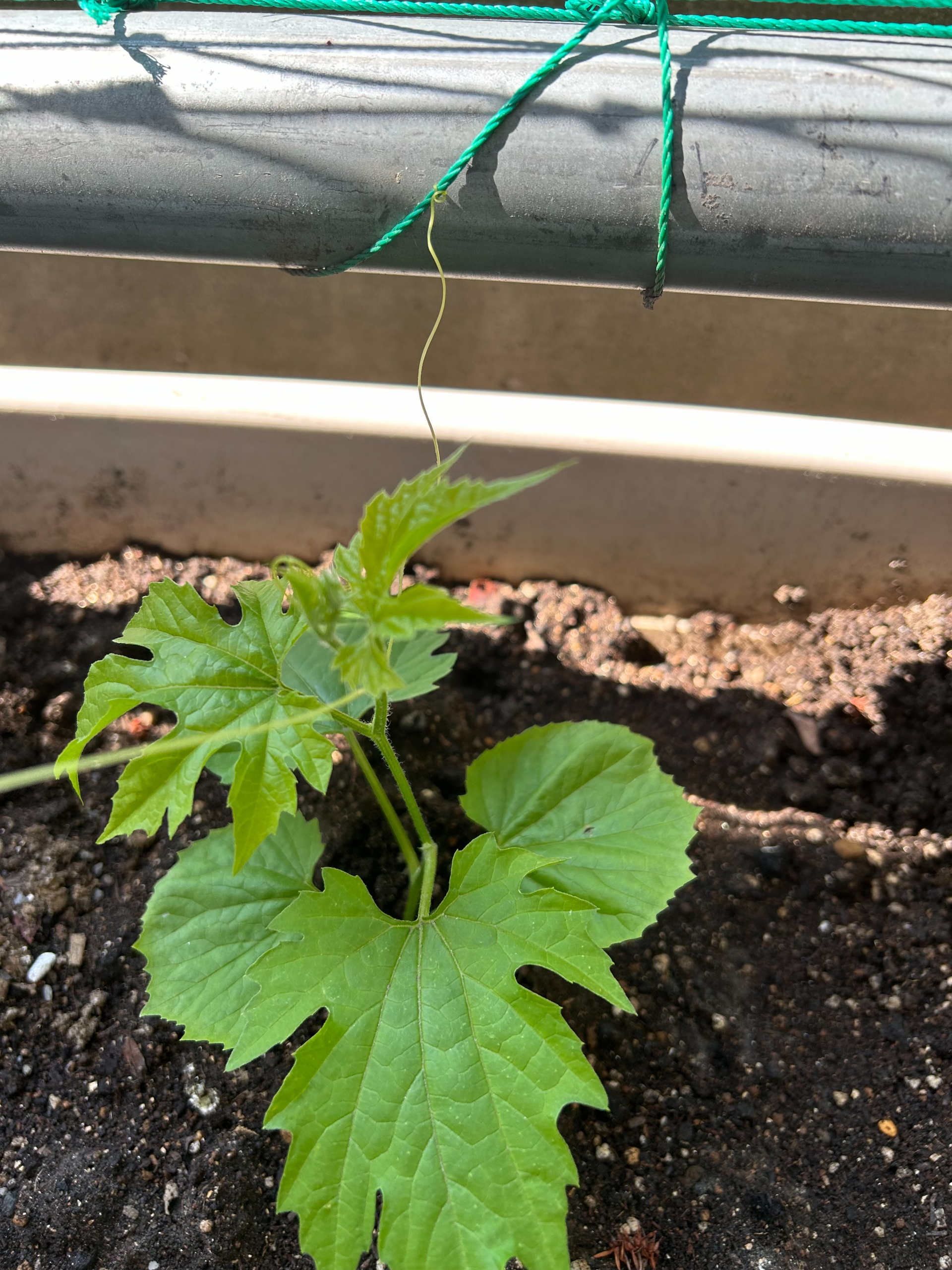 緑のカーテン…、ツルが成長をし始め「さあ、これから」っといった感じです
