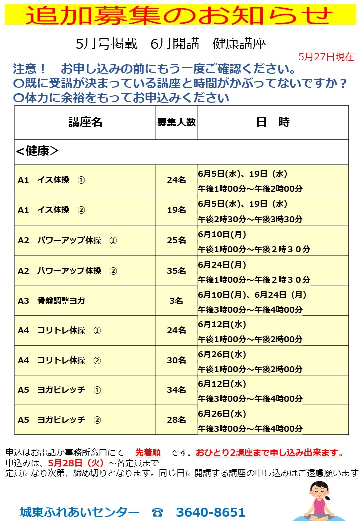 ※申し訳ございません、骨盤調整ヨガがキャンセル待ちとなっております