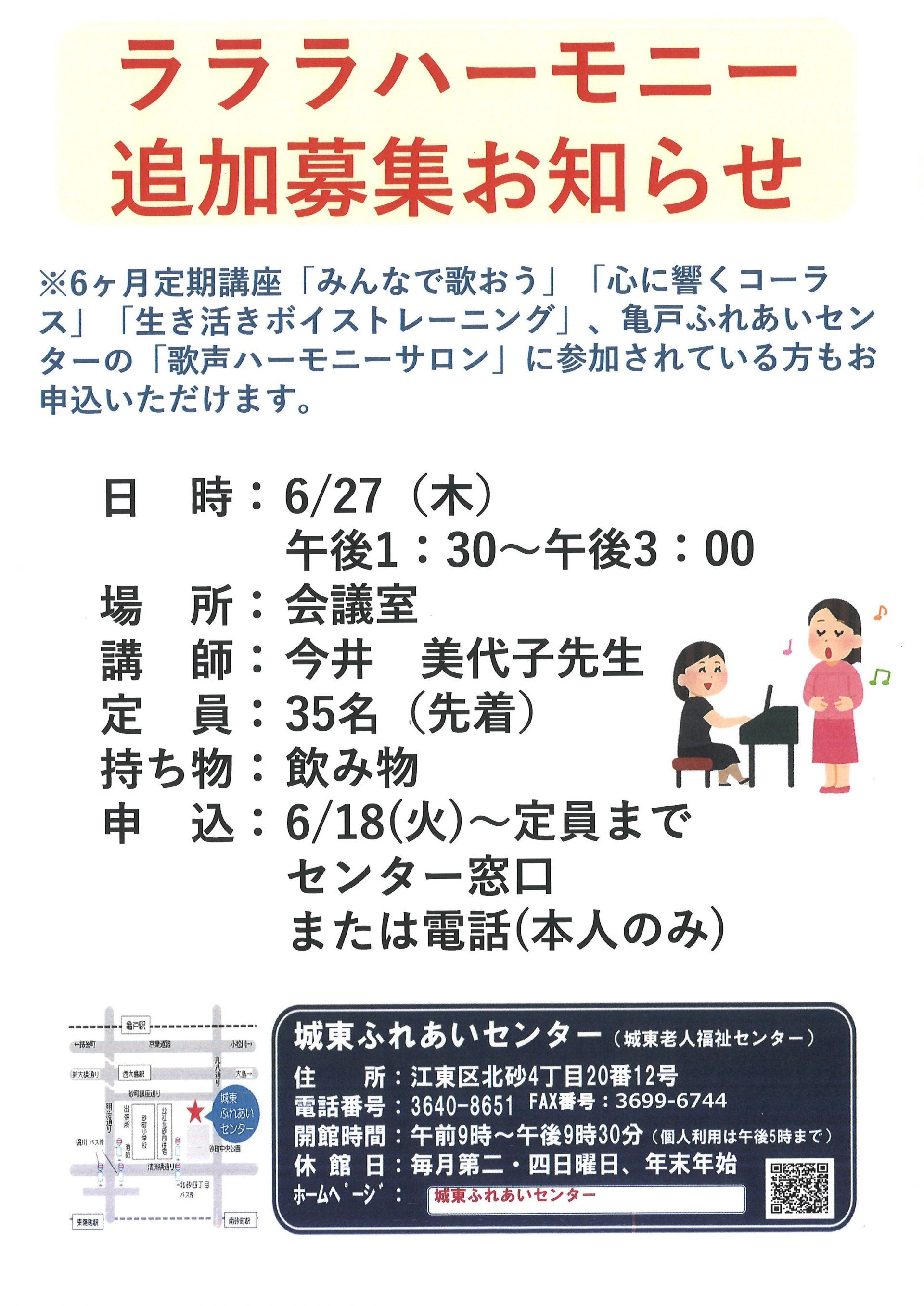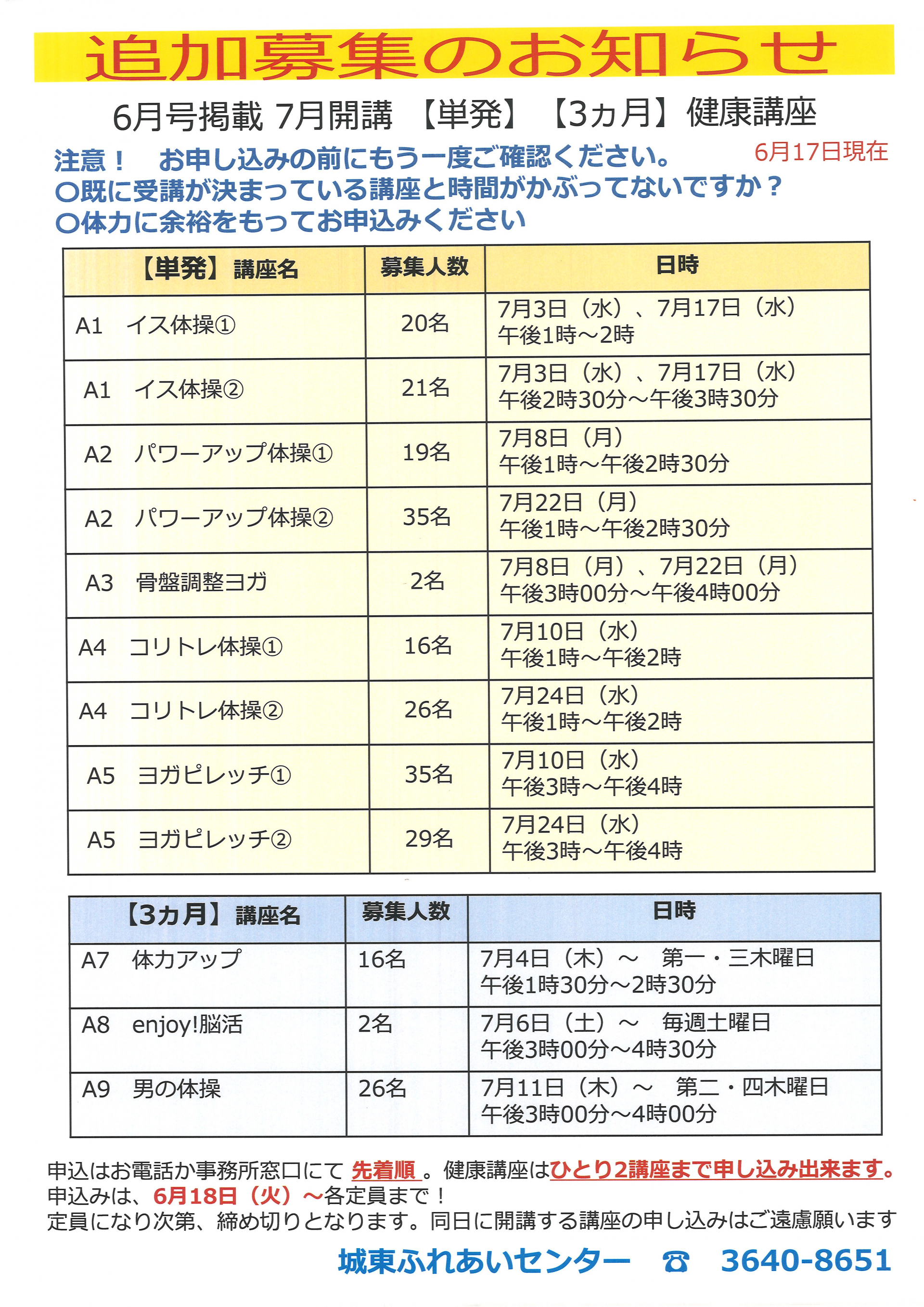 7月開催 単発・3ヶ月講座 追加募集のお知らせ